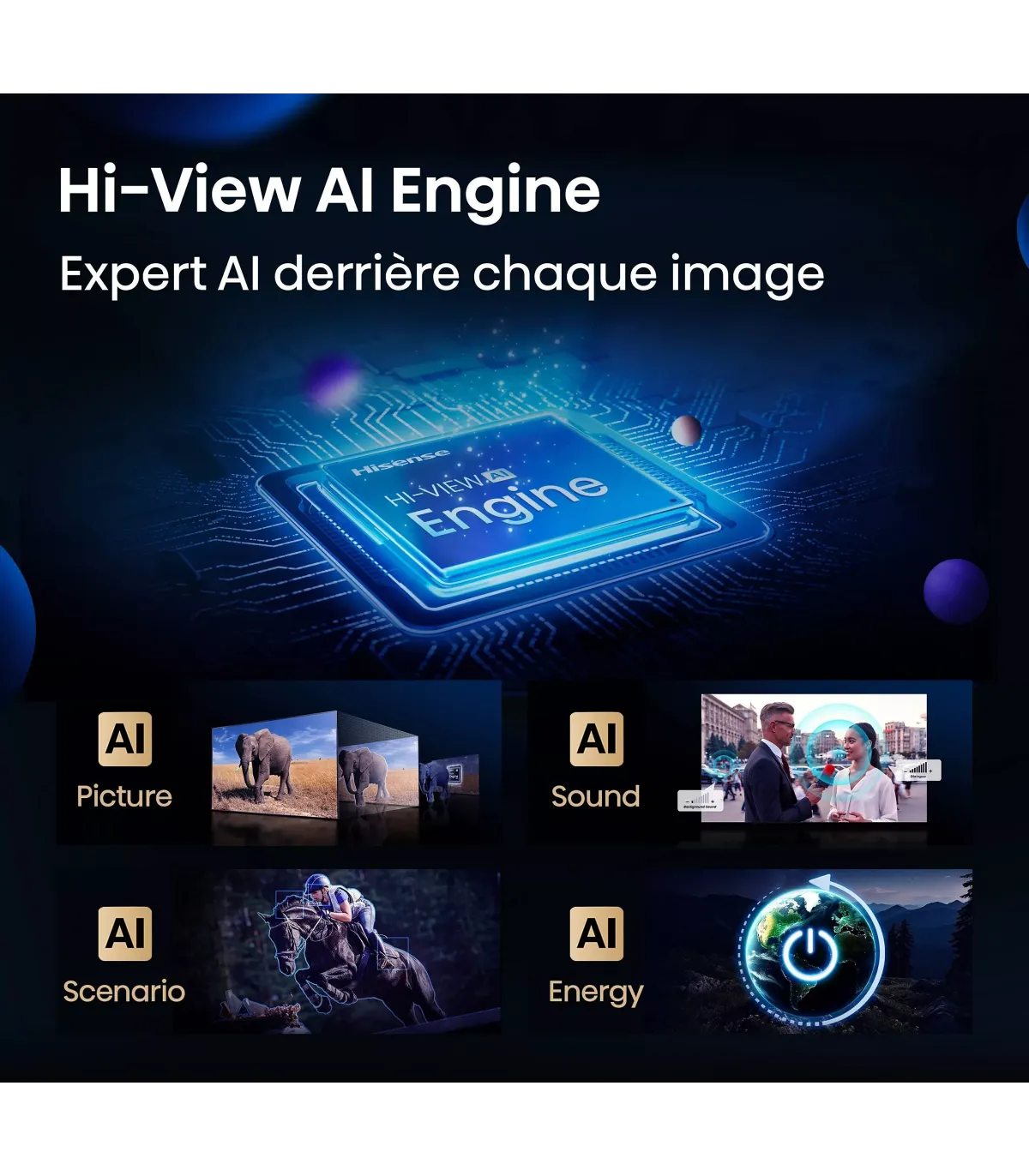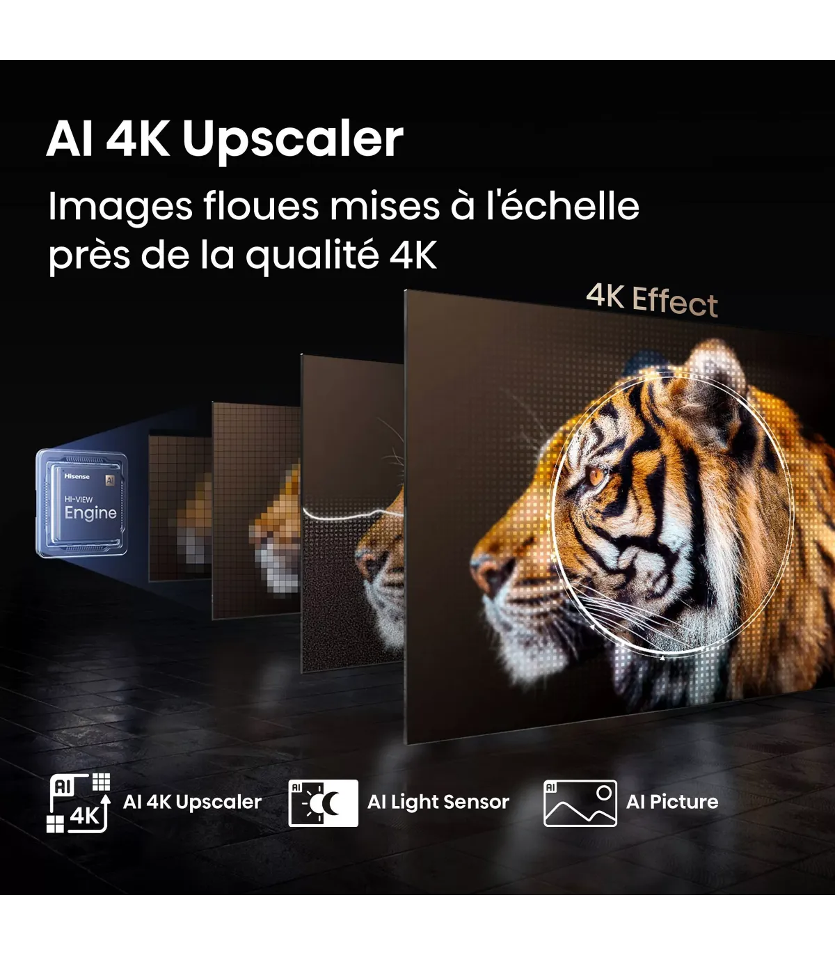• Puce dédiée Hisense série Hi-View Engine Pro (génération exacte non déductible)