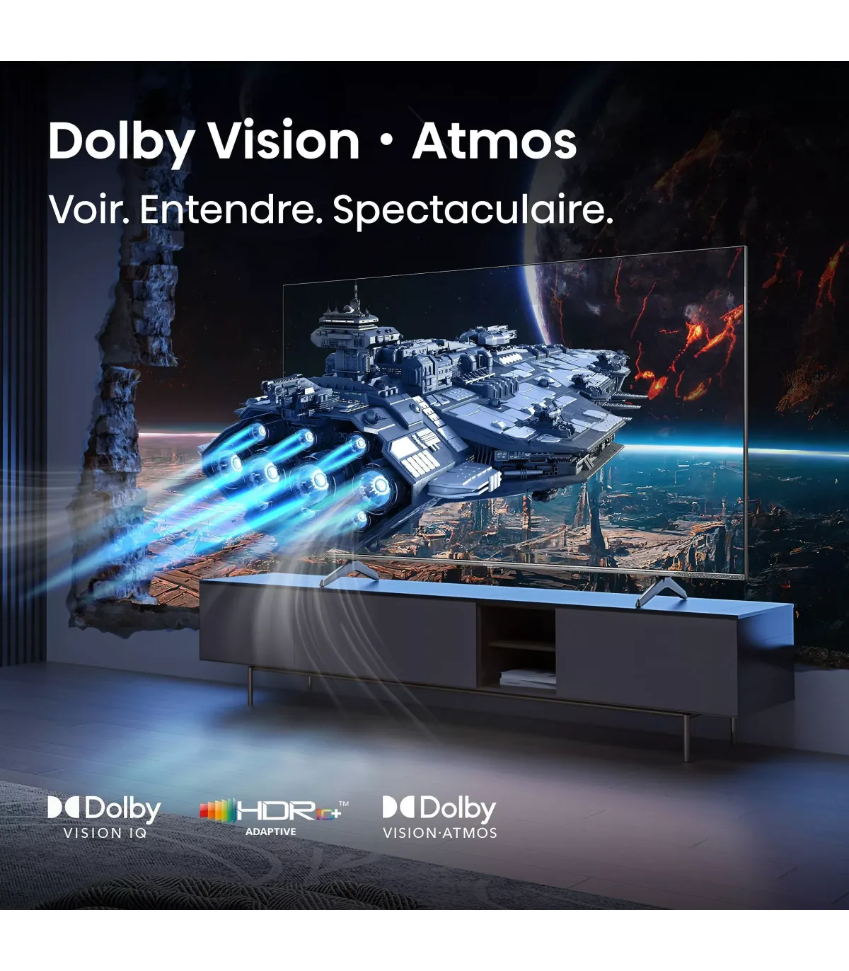 Offrez-vous une expérience cinéma sans compromis avec le Hisense 100E7Q Pro, un téléviseur MiniLED 100 pouces qui redéfinit les standards de l'image domestique. Grâce à sa résolution 4K UHD et sa technologie MiniLED associée à la gestion avancée de la luminosité locale, chaque scène révèle des contrastes saisissants, des noirs profonds et des couleurs d'une richesse exceptionnelle. Compatible HDR10+ et Dolby Vision, il garantit une reproduction fidèle des contenus HDR les plus exigeants, tandis que son taux de rafraîchissement élevé assure une fluidité parfaite pour le sport et le gaming. Équipé du système Smart TV VIDAA, il centralise vos applications de streaming favorites en toute simplicité. La connectivité complète — HDMI 2.1, Wi-Fi, Bluetooth et USB — permet de brancher tous vos appareils sans contrainte. Son design ultra-fin s'intègre élégamment dans n'importe quel intérieur pour une immersion totale au quotidien.