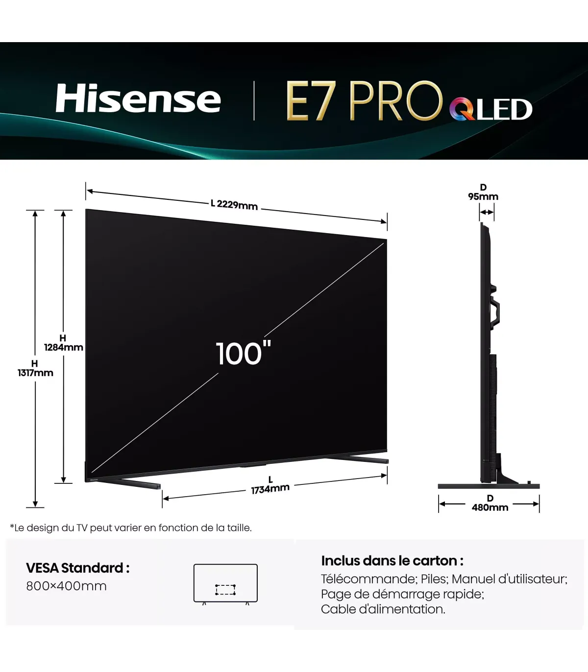 Hisense 100E7Q Pro | TV 100" 4K UHD MiniLED – Achetez au Meilleur Prix