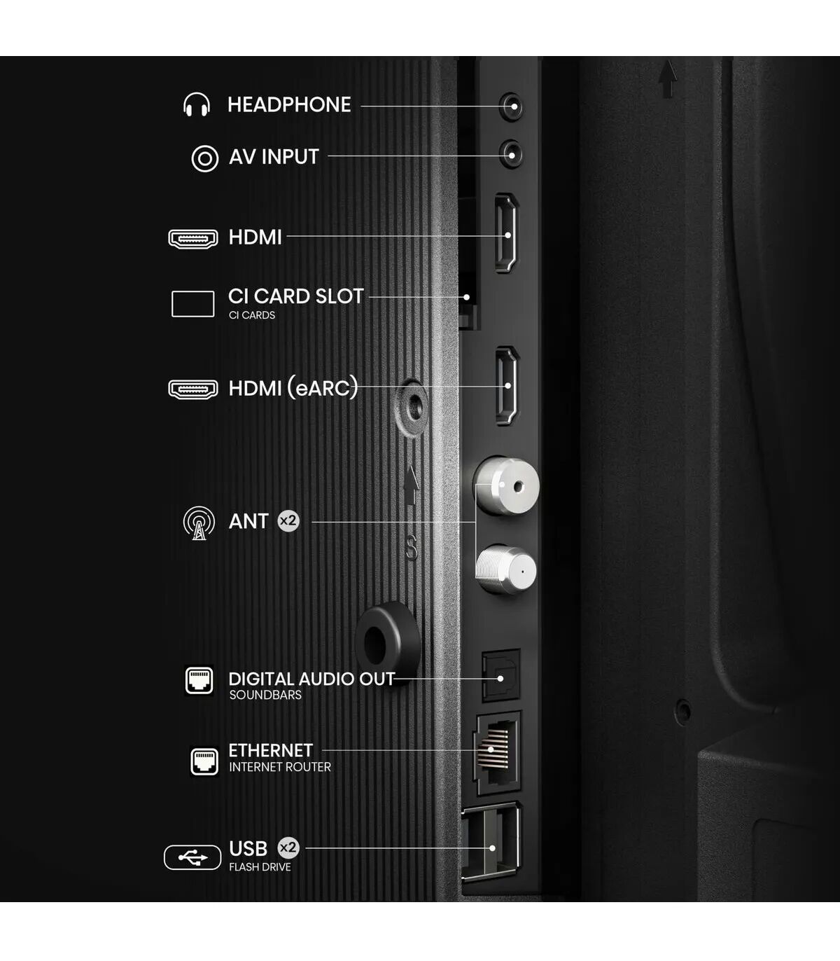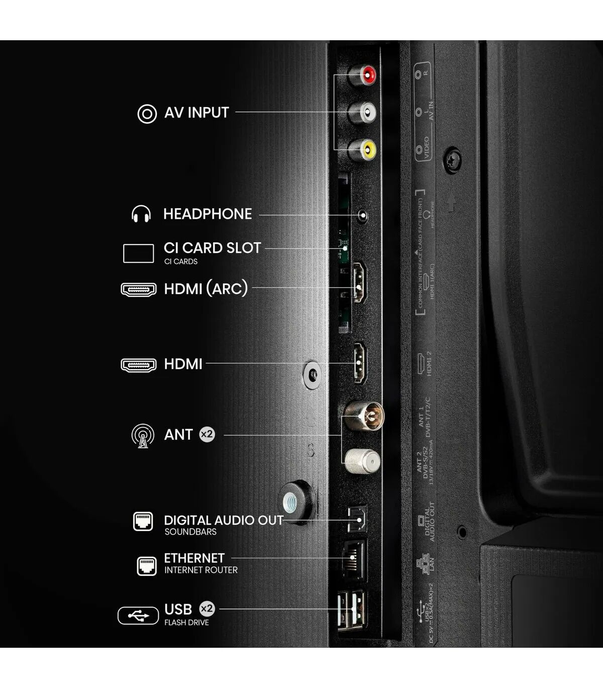 Dites adieu aux câbles en désordre ! Ce téléviseur dispose de plusieurs options de connectivité qui répondent à tous vos besoins multimédias. Avec deux ports HDMI (version 1.4) pour une connectivité sans faille avec des appareils externes tels que des consoles ou des lecteurs Blu-ray, un port USB pour une lecture facile des médias, un port Ethernet (RJ45) pour des connexions filaires, et une prise casque (3,5 mm), vous ne manquerez jamais de moyens de vous connecter. Que vous diffusiez du contenu depuis votre smartphone ou votre console de jeux, ce téléviseur garantit une expérience fluide et sans décalage.