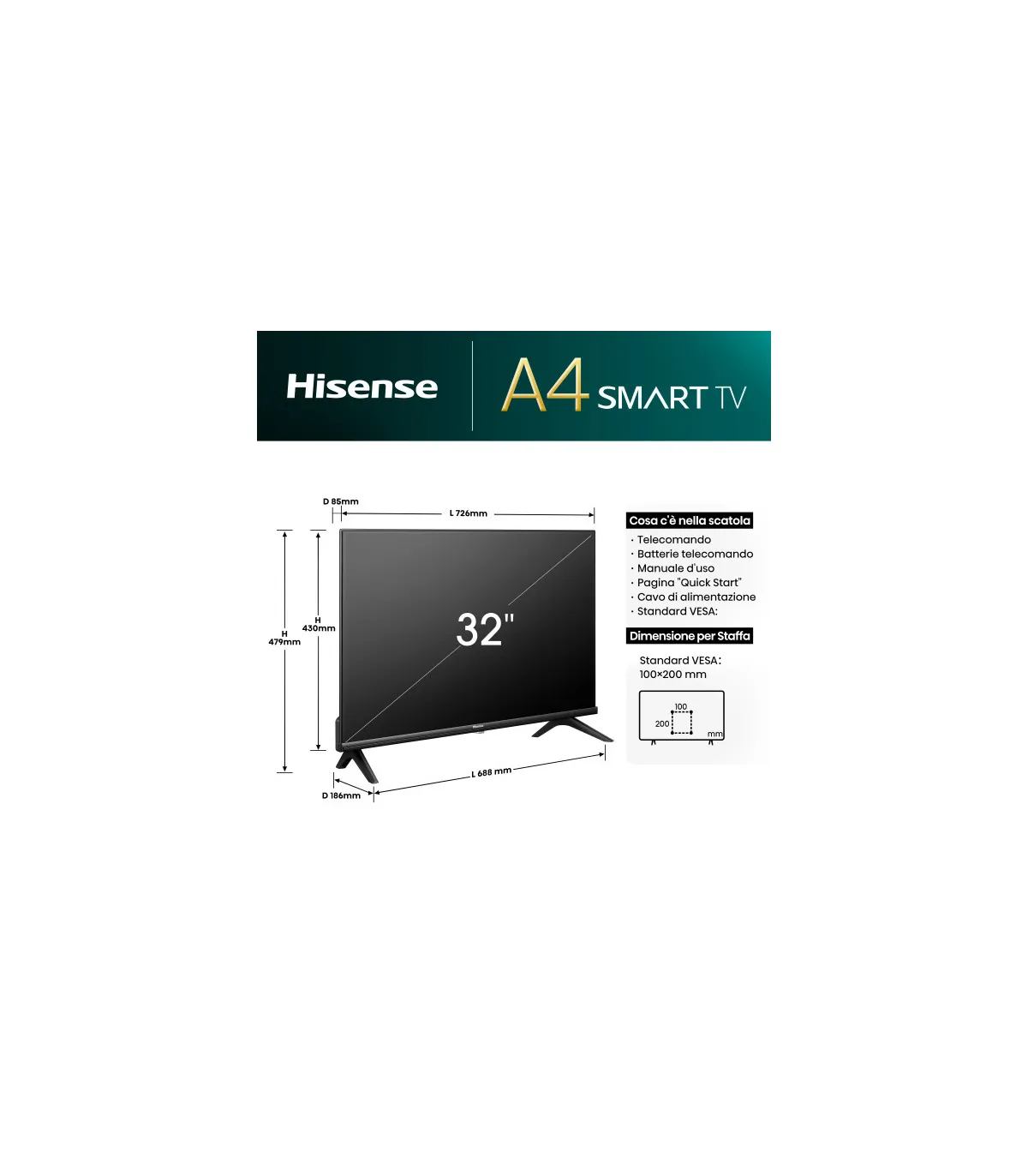 Découvrez le Hisense 32A4N, un téléviseur HD LED de 32 pouces qui transforme votre expérience visuelle avec une résolution impressionnante de 720p (1366 x 768 pixels) et une fréquence fluide de 60 Hz, parfait pour les petits espaces. Son design élégant en noir s'intègre harmonieusement à tout décor, tandis que sa connectivité polyvalente, incluant des ports HDMI et USB ainsi qu'une connexion Wi-Fi intégrée, vous permet d'accéder facilement à vos applications préférées comme Netflix et YouTube. Avec son récepteur DVB-C/DVB-T2 intégré, profitez des chaînes numériques sans équipement supplémentaire pour un divertissement optimal chez vous !