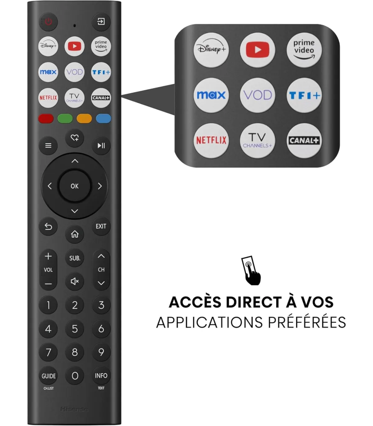• Accès aux applications : Netflix, Prime Video, YouTube