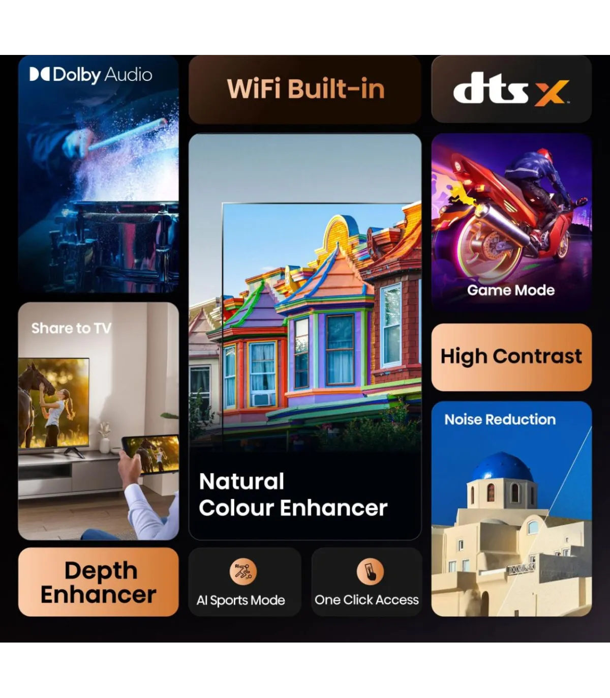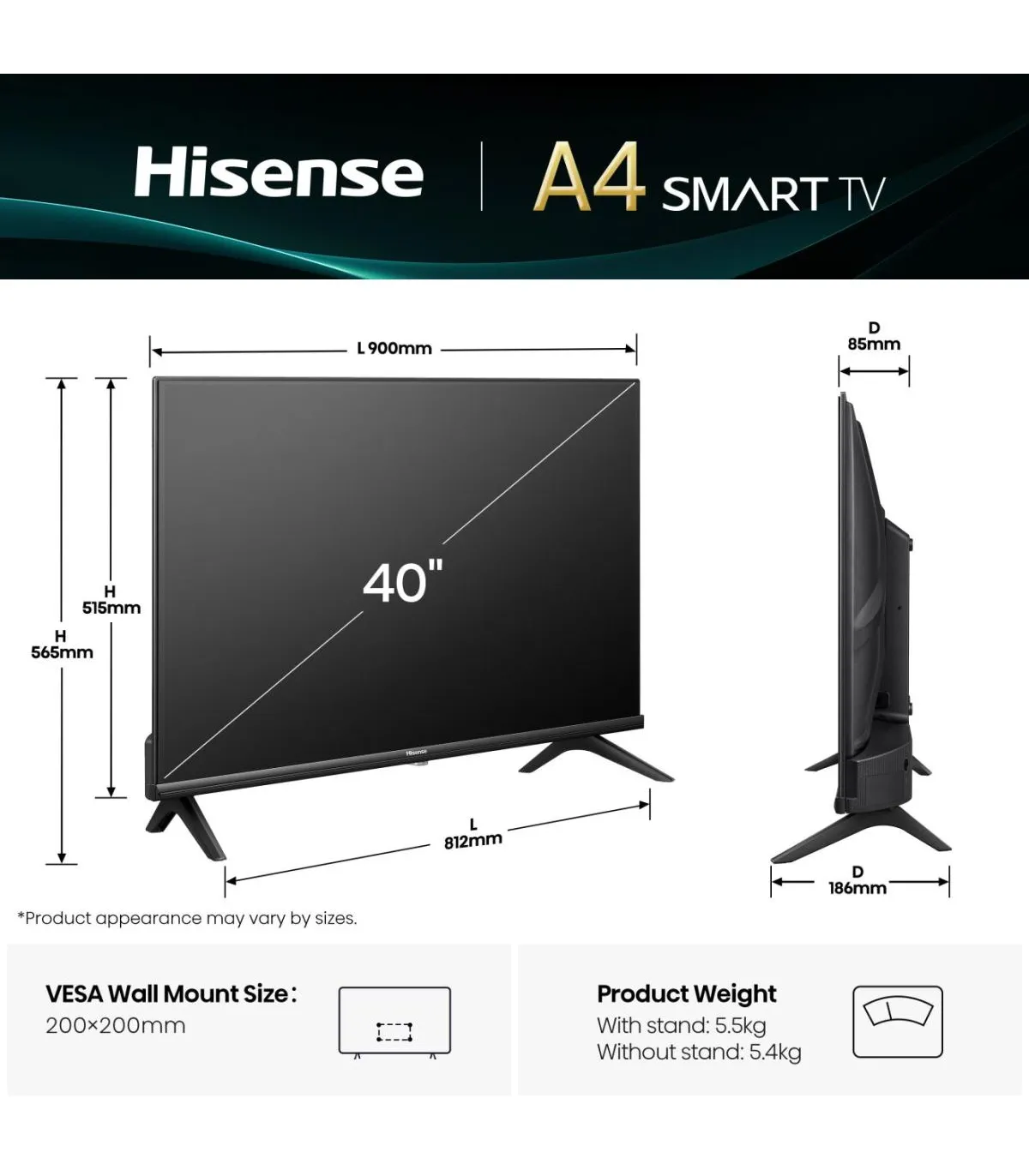 Découvrez le téléviseur Hisense 40A4Q, l’allié idéal pour votre salon home cinéma. Son design épuré met en valeur une dalle de 40" (101 cm), parfaite pour profiter d’une résolution Full HD (1920 x 1080) aux couleurs naturelles et aux contrastes précis. Porté par un processeur quad-core réactif, ce modèle assure une navigation fluide sur VIDAA U Smart TV, avec accès rapide aux applications de streaming. L’image LED est optimisée pour une netteté remarquable, tandis que le système audio intégré délivre un son stéréo clair, compatible Dolby Audio pour une immersion renforcée. Côté connectivité, profitez du Wi‑Fi intégré et du Bluetooth pour relier facilement barres de son, casques ou manettes. La connectique complète comprend HDMI, USB, sortie audio numérique (optique), entrée antenne et port Ethernet pour une connexion stable. Avec son faible encombrement, sa dalle et ses fonctionnalités Smart, il conjugue performance, simplicité et plaisir de visionnage au quotidien.
