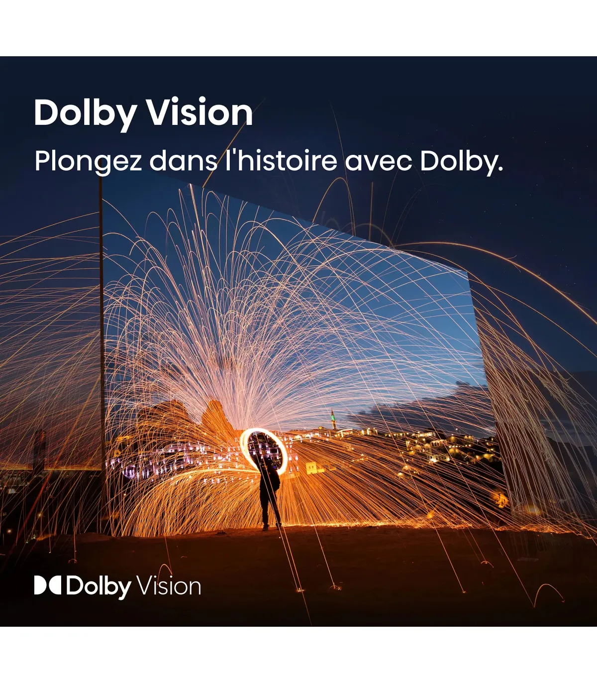 Le système audio intégré délivre un rendu équilibré avec des voix mises en avant et une scène élargie par traitement psychoacoustique. La compatibilité Dolby Audio améliore la dynamique et la clarté. Pour une expérience home cinéma plus ambitieuse, la sortie HDMI eARC permet de connecter une barre de son ou un ampli et de profiter de formats audio de meilleure qualité.