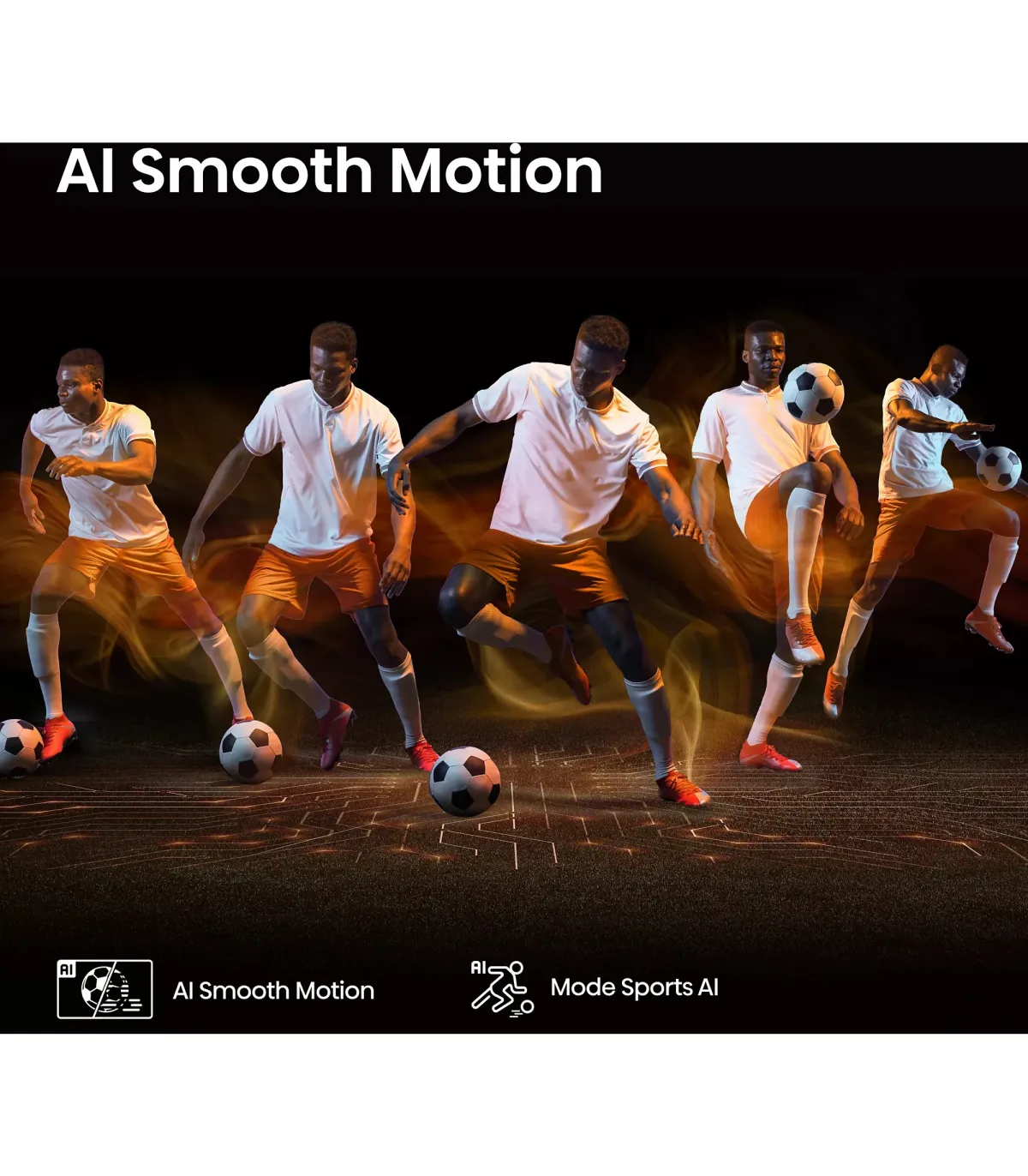 Le taux de rafraîchissement 60 Hz s’appuie sur un moteur de compensation pour stabiliser les travellings et limiter le flou cinétique. Les algorithmes de réduction des saccades et d’amélioration de la netteté en mouvement optimisent la lisibilité des scènes rapides, que ce soit pour le sport ou l’action, sans dérive artificielle excessive.