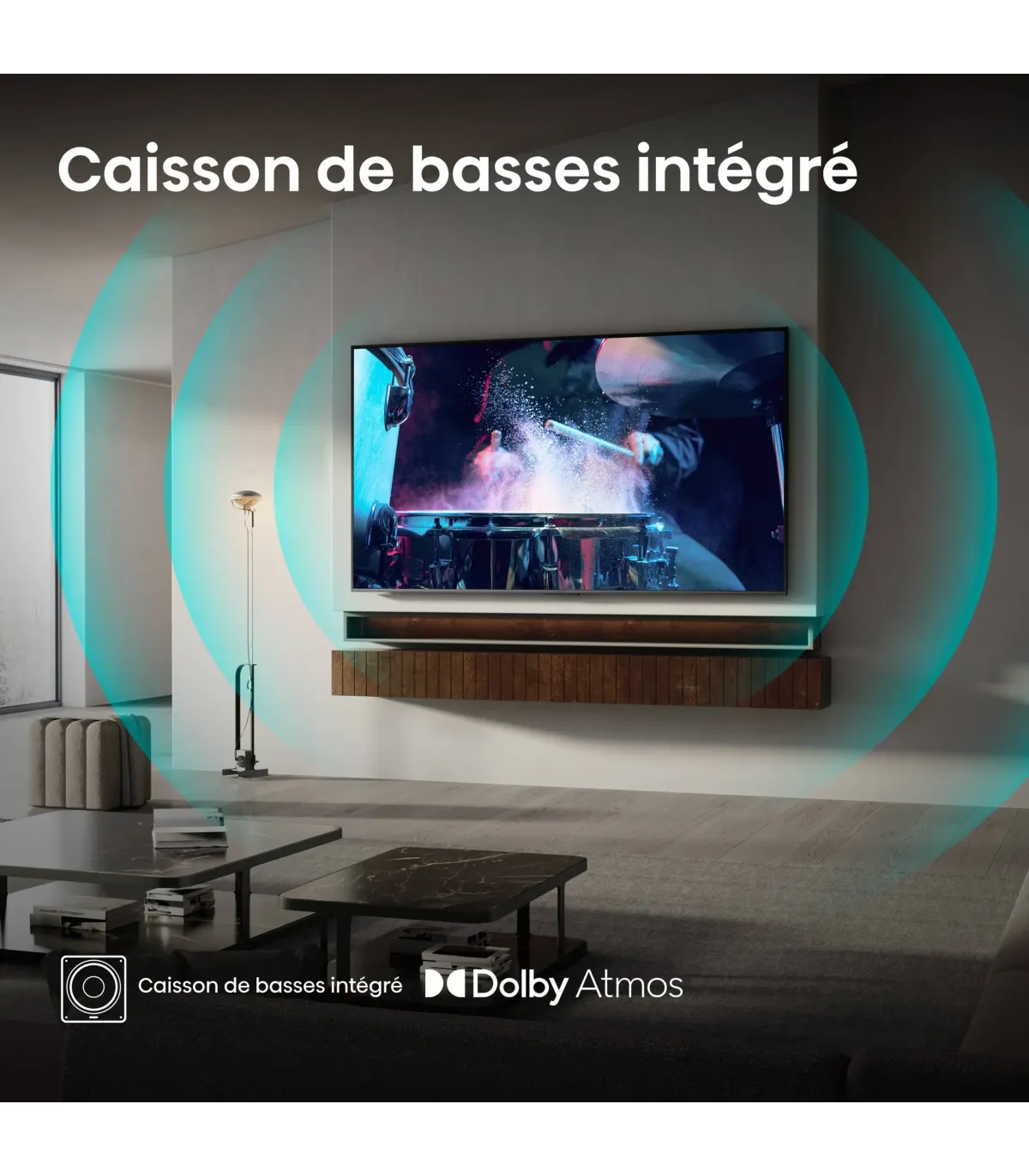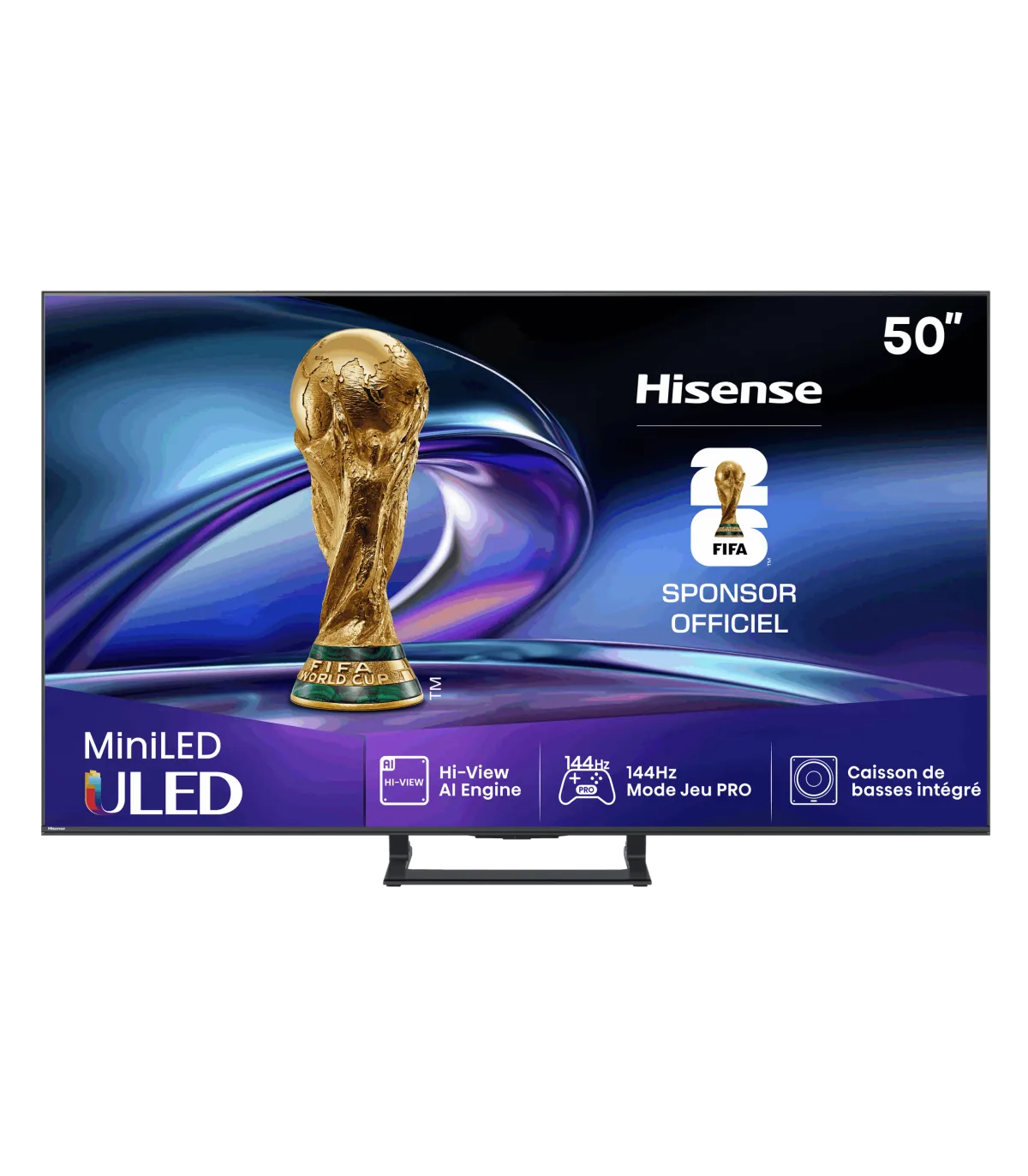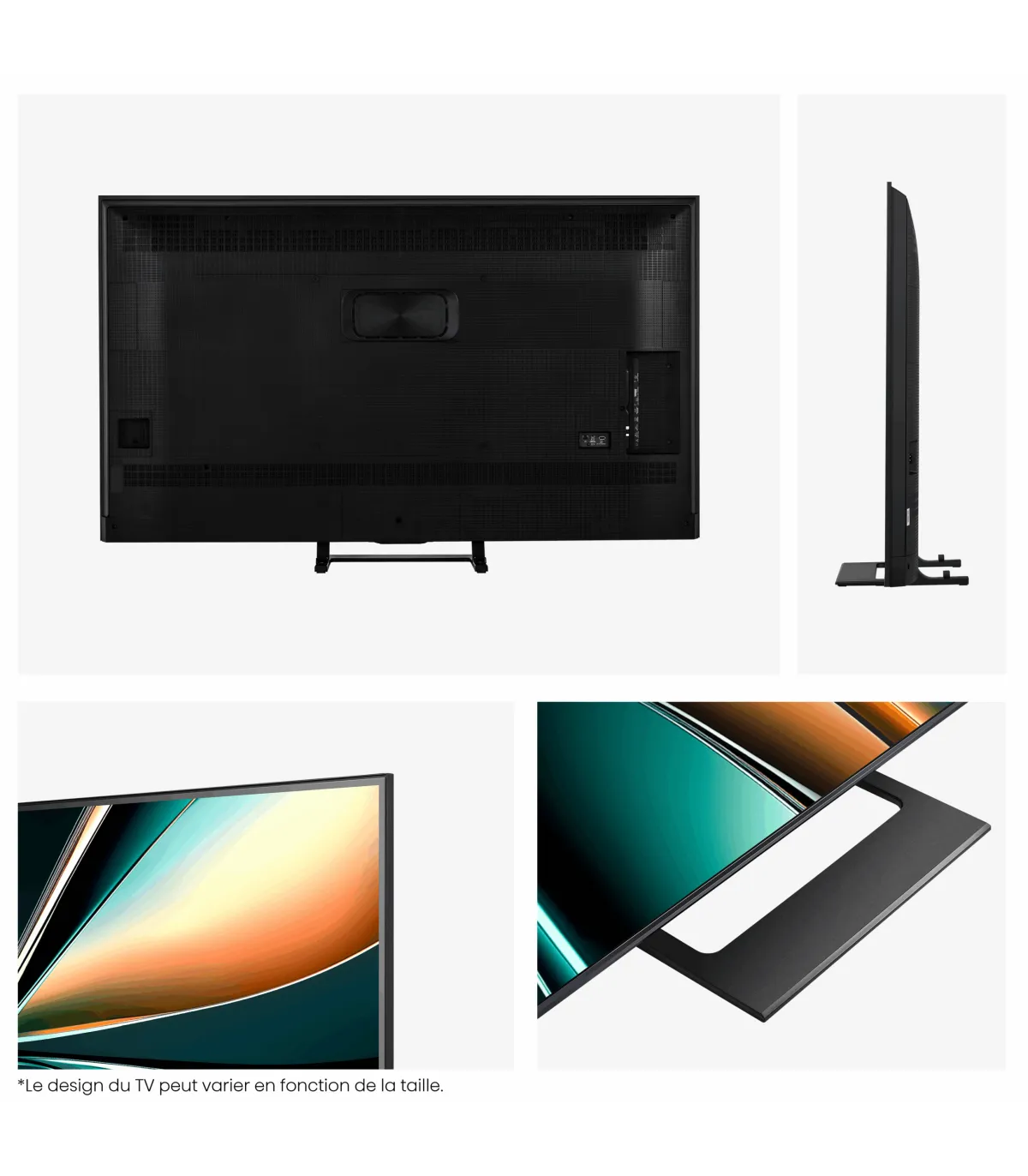 Le Hisense 50E8Q de 50 pouces (≈126 cm) intègre une dalle 4K Ultra HD (3840 × 2160) avec rétro-éclairage Mini-LED et technologie QLED pour des couleurs éclatantes et des noirs profonds. Le taux de rafraîchissement est 144 Hz natifs, avec prise en charge VRR pour une expérience jeu fluide et réactive. Il prend en charge les formats HDR : HDR10, HDR10+, Dolby Vision IQ. Le système SmartTV est basé sur VIDAA Smart OS avec Wi-Fi bi-bande et Bluetooth. Connectique haut de gamme : 4 ports HDMI 2.1 (dont certains à 144 Hz/ALLM/VRR), 2 ports USB, sortie audio eARC. Côté audio, il dispose d’un système d’environ 40 W (2 ×10 W + 20 W de subwoofer intégré) avec prise en charge Dolby Atmos et DTS Virtual:X pour un rendu immersif. Ce modèle s’adresse aux utilisateurs recherchant un téléviseur 50″ premium, performant pour cinéma et gaming tout en restant dans un format modéré.