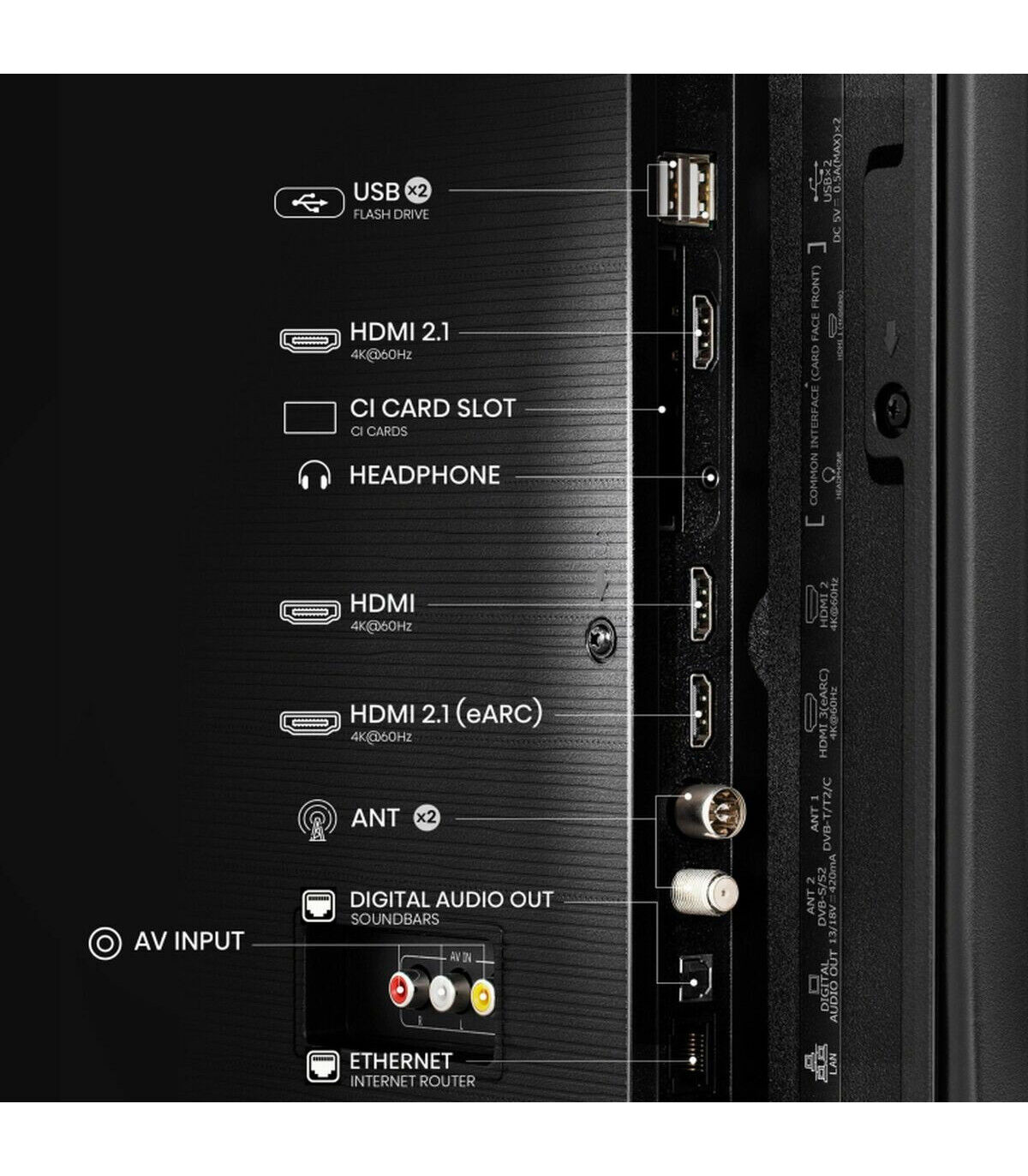 En termes de connectique, ce modèle dispose de diverses options pour répondre à tous vos besoins : HDMI, USB, sortie optique audio numérique et Ethernet sont disponibles pour connecter votre console de jeux vidéo, lecteur Blu-ray ou tout autre appareil externe.