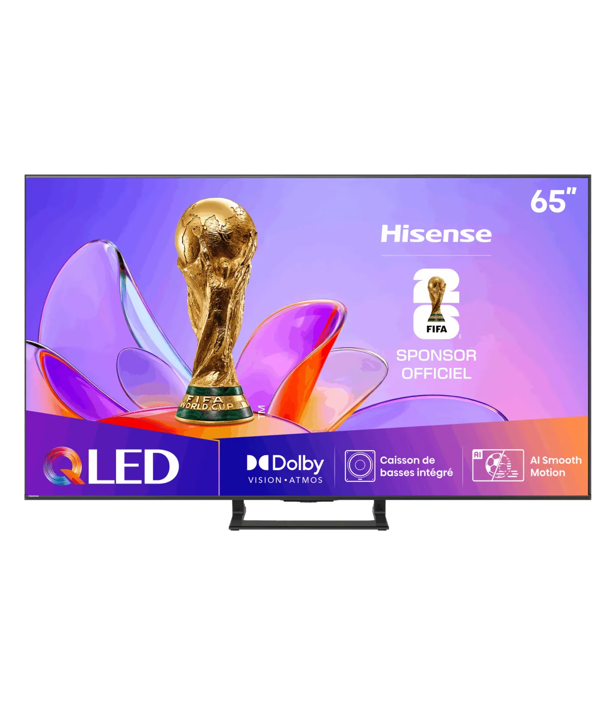 Découvrez le téléviseur Hisense 65A7Q 65" 4K UHD QLED, pensé pour le home cinéma. Son design fin et élégant sublime votre salon, tandis que la dalle QLED 65" (164 cm) délivre une résolution 4K UHD (3840 x 2160) éclatante, avec couleurs riches et contraste profond. Profitez d’une fluidité impeccable grâce au processeur performant Quad‑Core et à l’optimisation d’image HDR. Le son immersif, compatible Dolby Audio, renforce l’expérience. Animé par VIDAA U (système d’exploitation VIDAA), ce Smart TV offre un accès rapide aux applications majeures et une navigation intuitive. Côté connectique, vous disposez de ports HDMI, ports USB, sortie audio optique, entrée antenne, LAN (Ethernet). La connexion est simplifiée avec le Wi‑Fi intégré et le Bluetooth pour barres de son, casques et manettes. Domptez vos contenus en streaming, jeux et films avec une image précise, des noirs maîtrisés et une réactivité exemplaire. Hisense 65A7Q, le choix QLED pour une expérience cinéma à domicile.