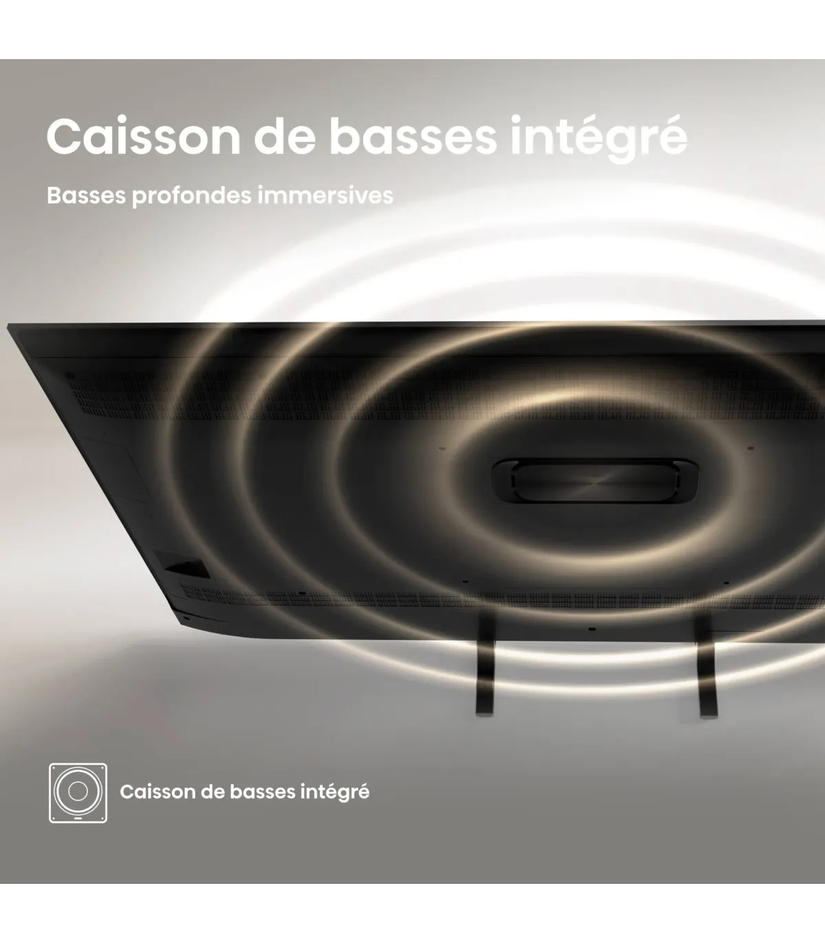 Le système audio intégré propose un rendu équilibré, avec des dialogues distincts et une scène sonore ample pour une TV de cette catégorie. La compatibilité Dolby Audio et l’optimisation des modes sonores permettent d’adapter le profil au contenu, du film spectaculaire à l’émission quotidienne. Un ajout de barre de son ou d’un pack home cinéma élargira encore l’ampleur et l’impact dynamique pour une immersion totale.
