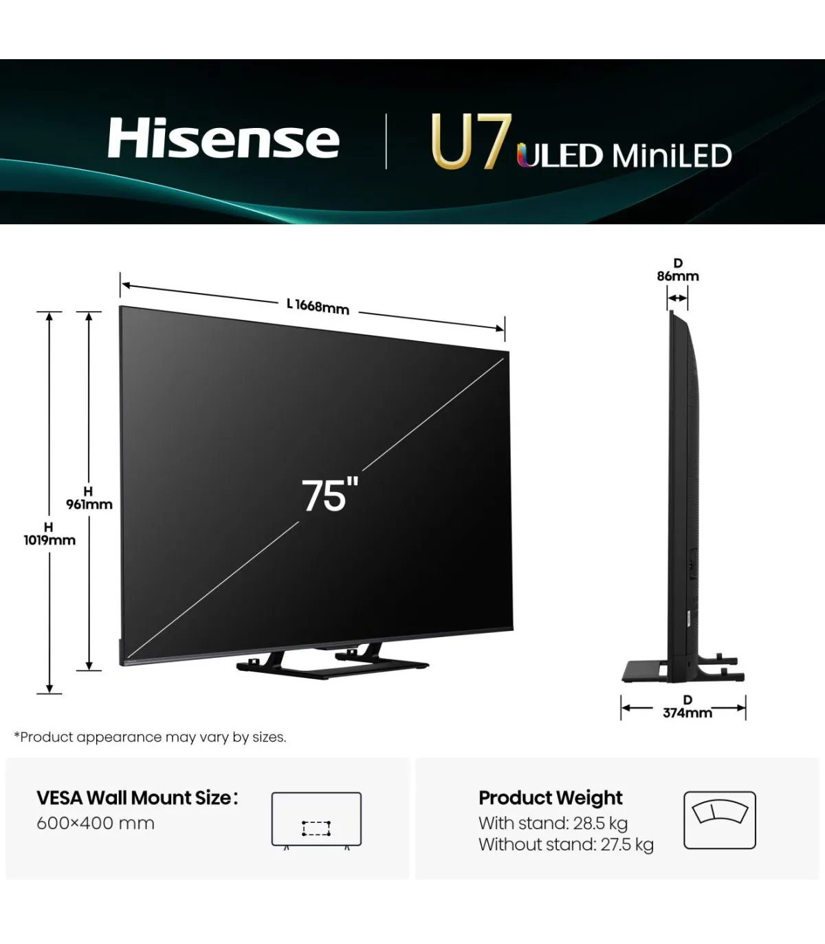 Hisense 75U7Q 75" 4K UHD ULED — TV LED 75 pouces, Smart TV, HDMI 4K, Dolby Atmos