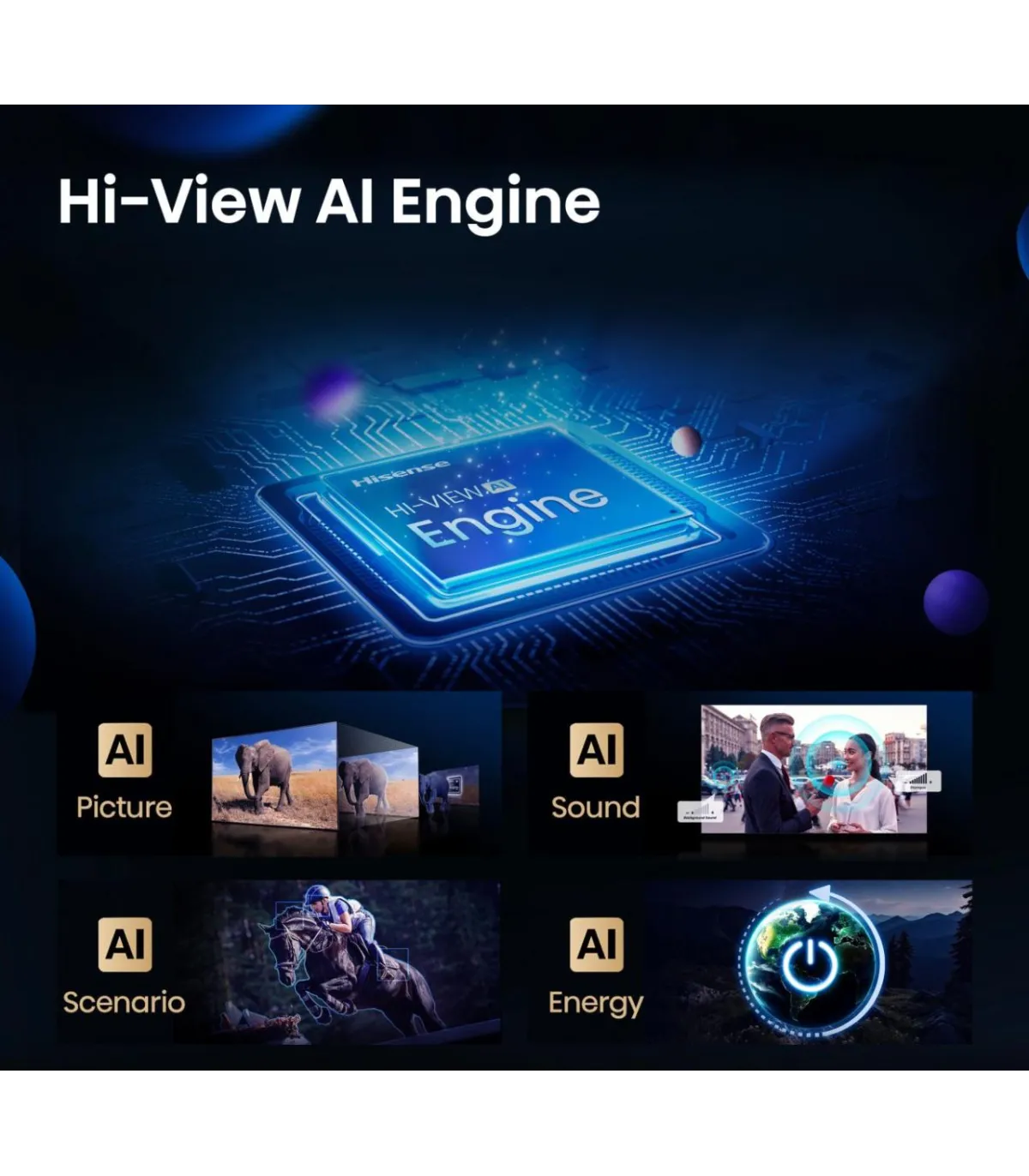 • Processeur : chipset propriétaire Hisense pour traitement d’image et Smart TV (modèle non précisé)