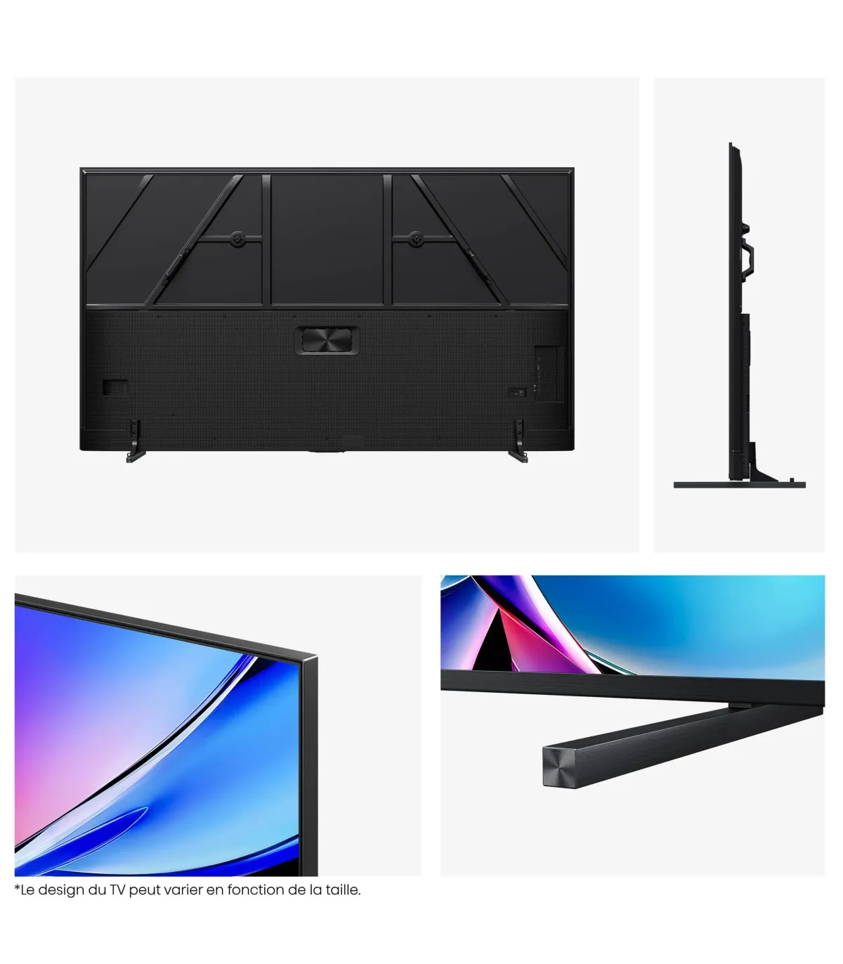 Avec son cadre fin et ses lignes sobres, le téléviseur Hisense 85E7Q s’intègre naturellement dans les espaces modernes tout en affirmant une présence premium. Sa diagonale de 85 pouces (214 cm) plonge immédiatement au cœur de l’image, tandis que le pied central stable facilite l’installation sur un meuble TV. Pour une fixation murale discrète et sécurisée, il est compatible VESA (vérifier l’entraxe exact selon le support), offrant ainsi une flexibilité optimale d’intégration dans une pièce dédiée home cinéma.