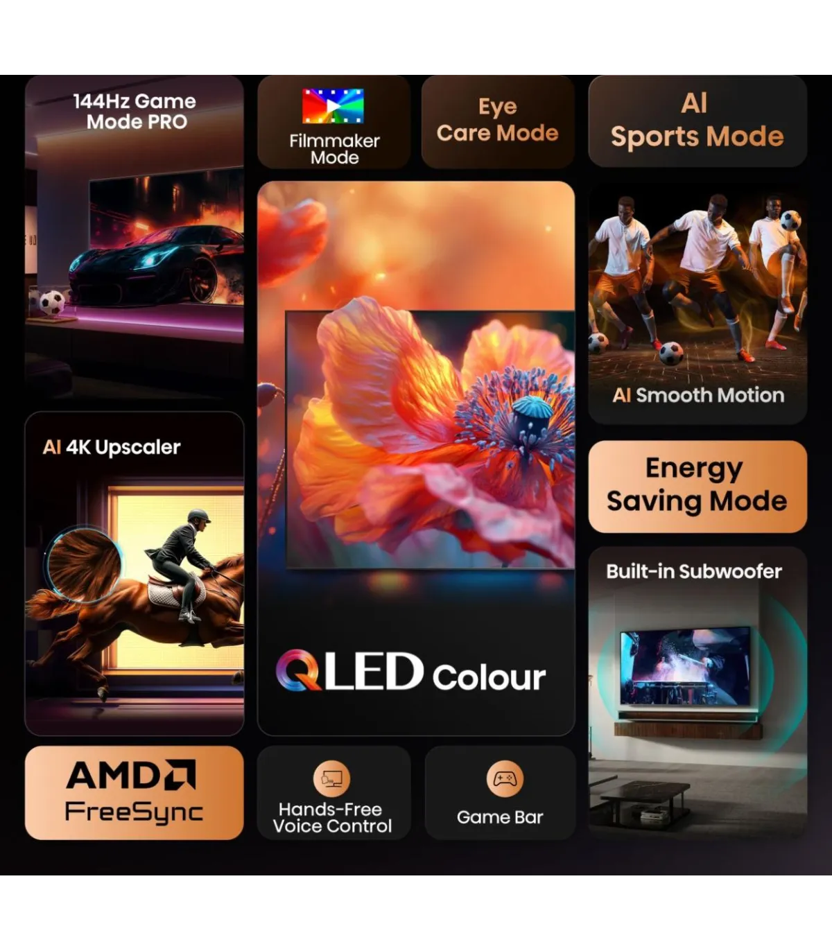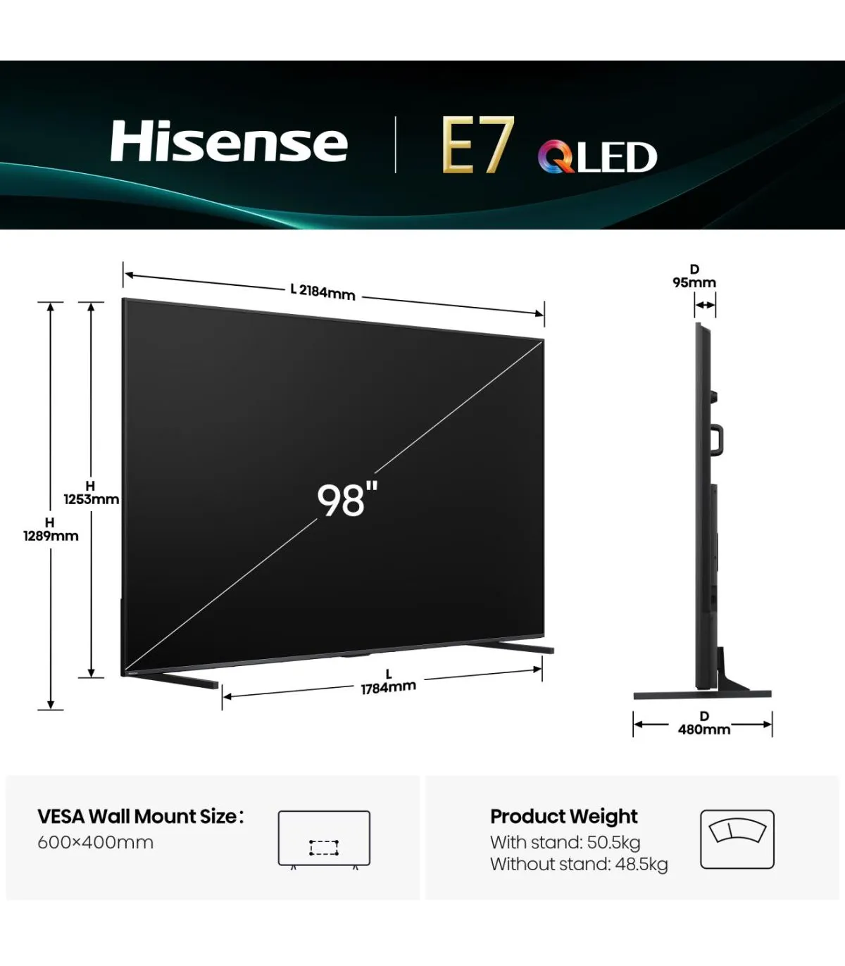 Plongez au cœur du spectacle avec le Hisense 98E7Q 98" (248 cm) 4K UHD QLED. Son design bord à bord élégant sublime votre salon home cinéma. La dalle QLED 4K (3840 x 2160) offre des couleurs éclatantes, un contraste profond et une luminosité maîtrisée, idéale pour films, séries et sport. Propulsé par le processeur Hi‑View et le système Smart TV VIDAA U, il garantit une navigation fluide, des applications rapides et un streaming sans effort. Le son immersif avec prise en charge Dolby Audio/DTS renforce chaque scène. Côté connectique, profitez de HDMI, USB, Sortie audio optique, RJ45 (Ethernet) et CI+ pour relier vos sources. La connectivité Wi‑Fi et Bluetooth assure un appairage simple avec barres de son, manettes et casques. Parfait pour le gaming et le cinéma maison, ce téléviseur combine grande diagonale, résolution 4K, QLED, processeur puissant, Smart TV VIDAA U, Wi‑Fi et Bluetooth, pour une expérience visuelle et sonore haut de gamme.
