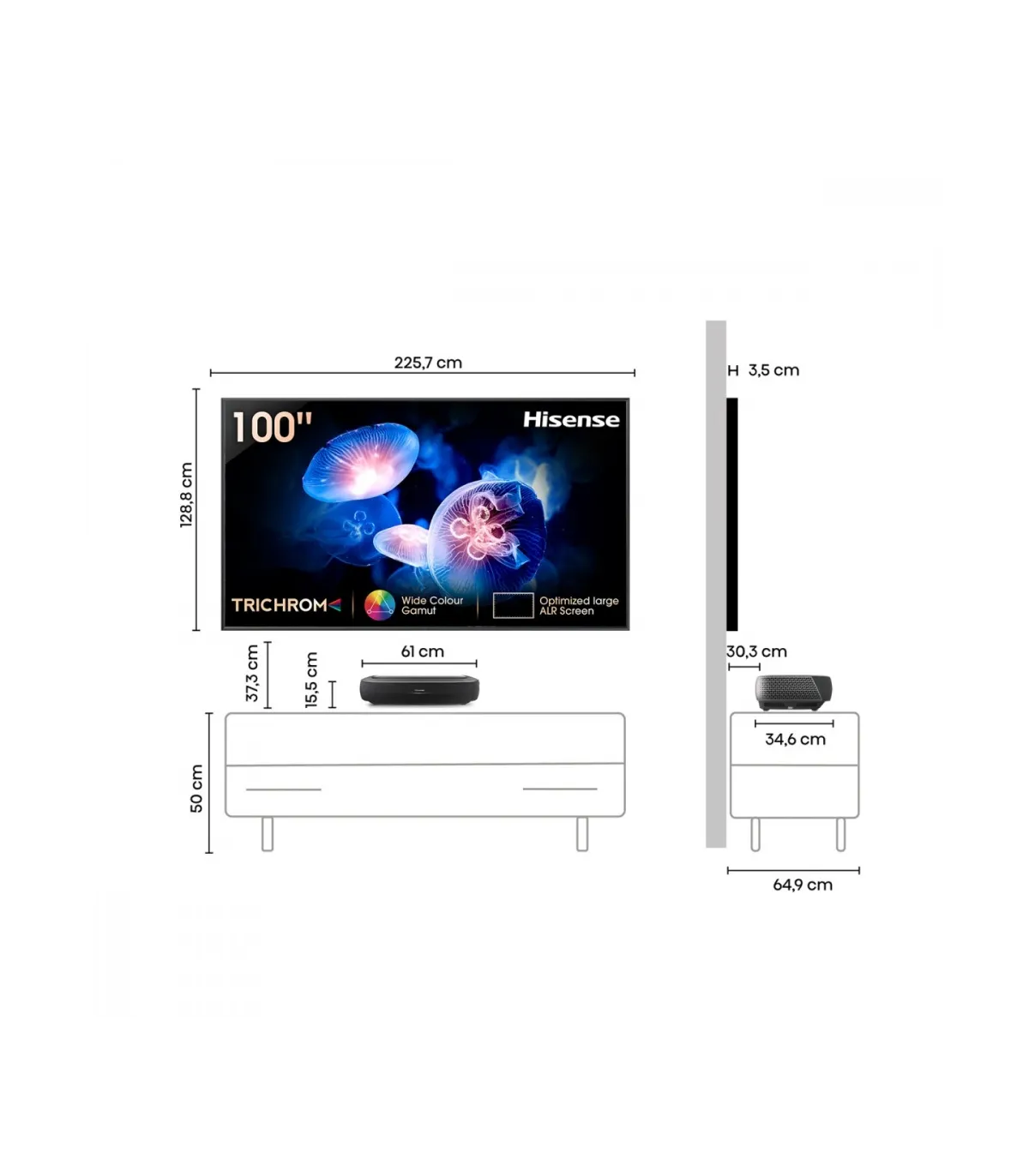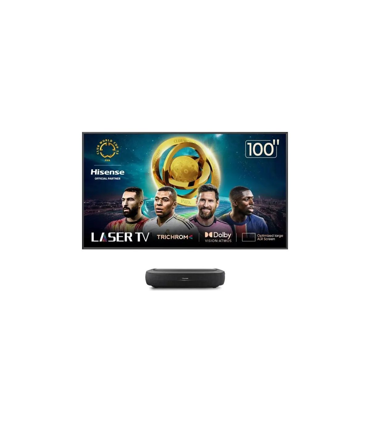 Plongez au cœur du home cinéma avec le Laser TV 100 inches 100L9HD. Son design élégant et discret s’intègre parfaitement à votre salon, tandis que sa dalle 100" (254 cm) offre une immersion grand format. Profitez d’une image lumineuse et précise en résolution 4K UHD (3840 x 2160), avec des couleurs riches et des contrastes profonds. Le processeur Quad‑Core optimise fluidité et mise à l’échelle, et le système d’exploitation Android TV vous donne accès à vos applications préférées. Le son puissant et enveloppant, compatible Dolby Audio, sublime vos films et séries. Côté connectique, bénéficiez de HDMI, USB, optique, Ethernet et sortie audio pour tous vos appareils. Restez connecté facilement avec le Wi‑Fi double bande et le Bluetooth pour casques, barres de son ou manettes. Avec ses ports HDMI x3, USB x2, et ses connexions Wi‑Fi et Bluetooth, le 100L9HD réunit performance, simplicité et spectacle XXL pour une expérience cinéma à domicile.