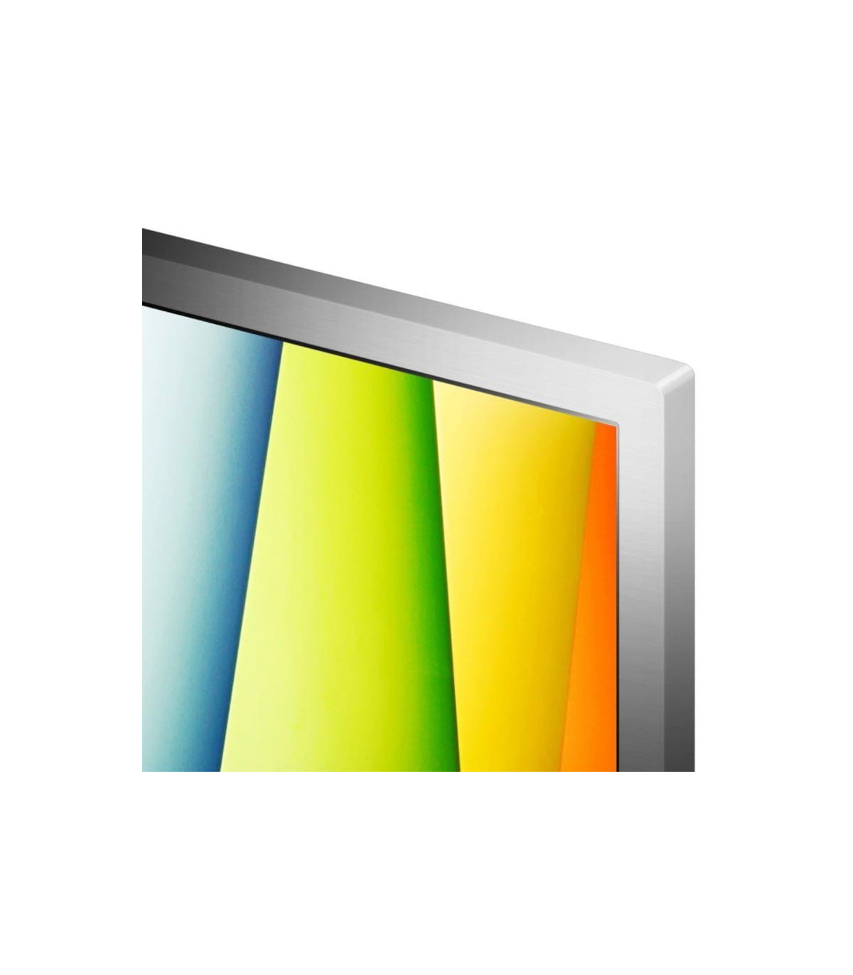 Le premier coup d'œil sur ce bijou révèle un design à la fois minimaliste et raffiné. Son cadre fin offre une esthétique moderne qui s'intègre parfaitement à tout décor intérieur. Le pied central assure non seulement une stabilité optimale, mais ajoute également une touche d'élégance supplémentaire à l'appareil. Ce téléviseur n'est pas seulement conçu pour vous offrir des images impressionnantes, il est aussi destiné à embellir votre espace de vie.