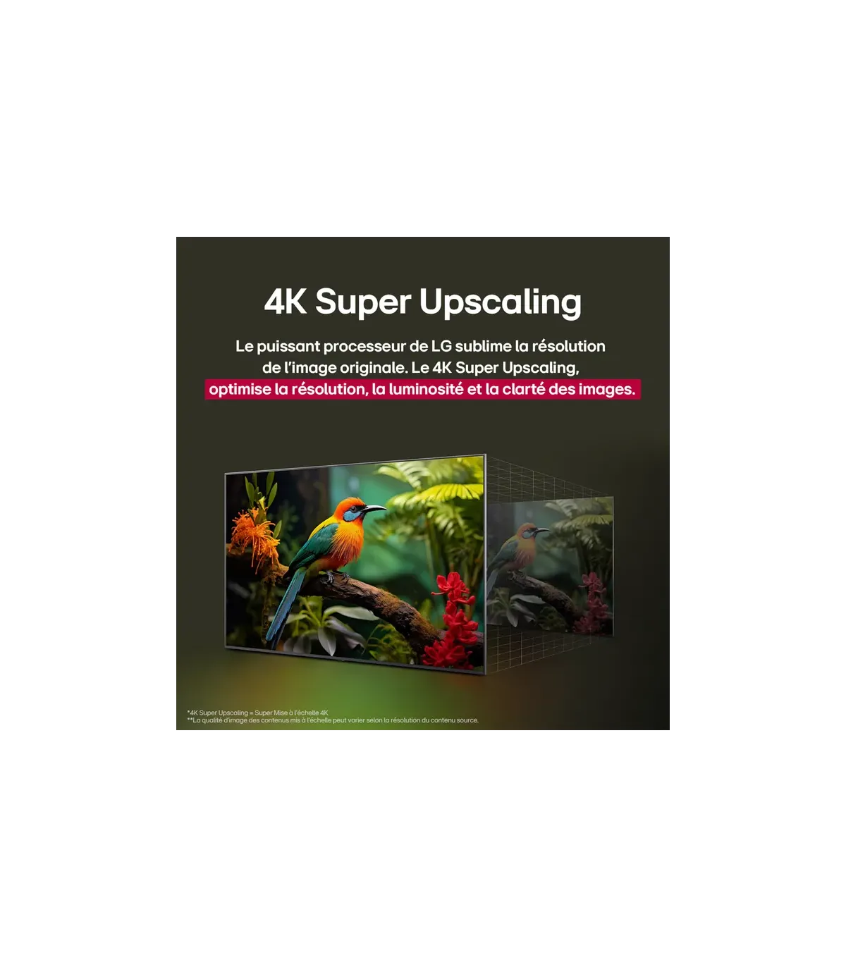 Découvrez le LG 43QNED82A6B.AEU, un téléviseur 43" (108 cm) au design fin et élégant qui sublime votre salon. Profitez d’une image d’une précision remarquable grâce à la technologie QNED, à la résolution 4K UHD (3840 x 2160) et au traitement HDR pour des couleurs riches et des contrastes profonds. Le processeur α7 AI 4K optimise chaque scène en temps réel, tandis que le son immersif et clair met en valeur vos films et séries. La Smart TV webOS offre une navigation fluide, des applications populaires et des recommandations personnalisées. Côté connectique, bénéficiez de HDMI, USB, sortie audio/optique, eARC et prise antenne, pour brancher consoles, barres de son et lecteurs. La connectivité Wi‑Fi et Bluetooth assure un streaming rapide et des appairages sans fil simples. Offrez-vous une expérience home cinéma complète, réactive et lumineuse, pensé pour le divertissement moderne et la performance au quotidien.