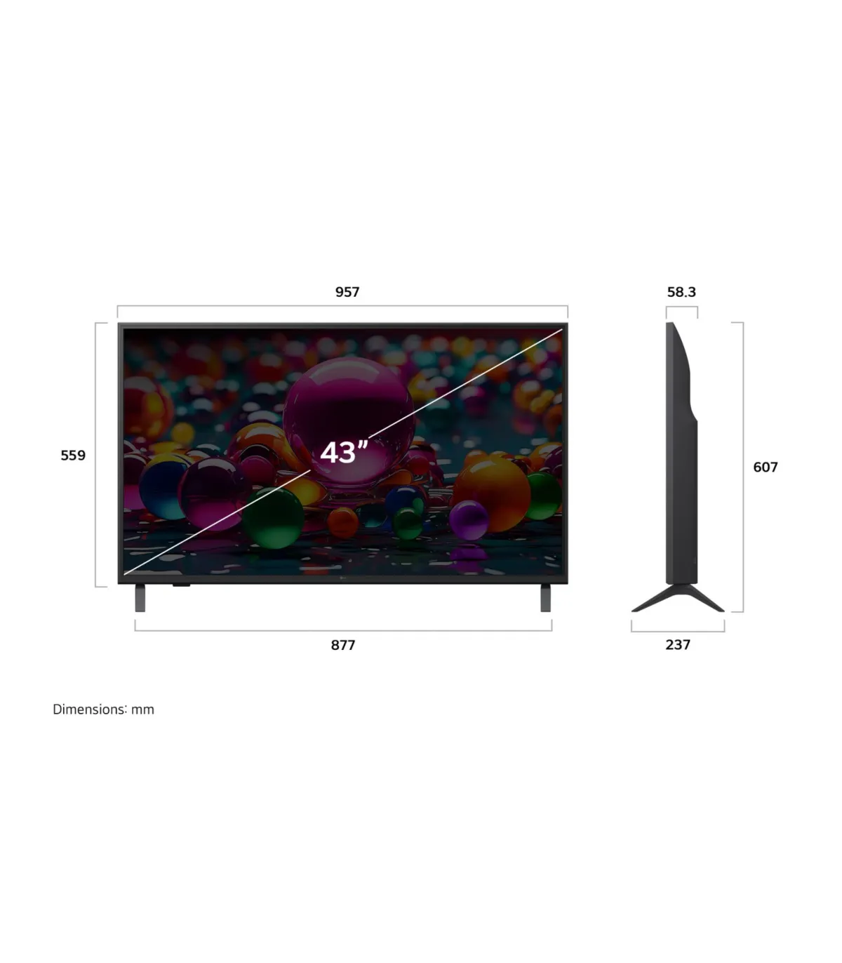 • Standard VESA : 200 × 200 mm (standard 43" LG)