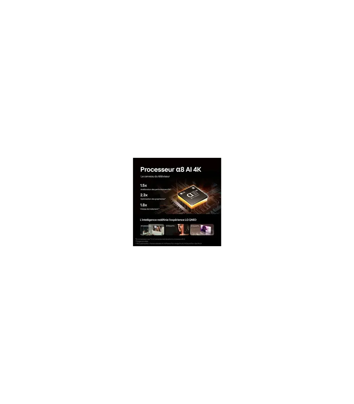 Découvrez des visuels époustouflants avec le LG 55QNED87T6B, un TV QNED 4K UHD de 55" qui combine technologie avancée et design élégant, offrant des couleurs vibrantes et des noirs profonds grâce à son éclairage LED et son dimming local. Profitez d'un son immersif avec des fonctionnalités telles que AI Acoustic Tuning, Clear Voice Pro, et un puissant système de mixage virtuel 9.1.2. Connectez-vous facilement à vos appareils via Bluetooth 5.1, Wi-Fi, ou plusieurs ports HDMI/USB tout en profitant des améliorations de jeu telles que Freesync, le mode de faible latence automatique (ALLM), et le taux de rafraîchissement variable (VRR). Avec des capacités intelligentes intégrées, y compris l'intégration d'Alexa, ce téléviseur transforme votre salon en un centre de divertissement !