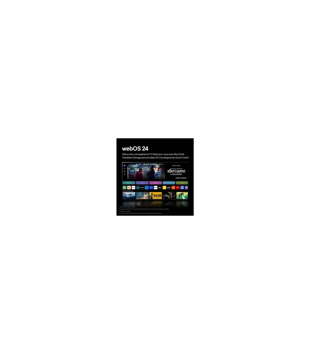 Découvrez un divertissement à domicile inégalé avec le LG OLED65G45LW, une magnifique TV OLED Evo 4K UHD de 65 pouces qui combine une technologie OLED de pointe et le puissant processeur α11 AI 4K pour une qualité d'image époustouflante et une précision des couleurs. Profitez d'un son immersif avec Dolby Atmos et une sortie audio robuste de 60W, complétée par des fonctionnalités avancées telles que des taux de rafraîchissement élevés, la compatibilité avec G-SYNC et FreeSync, ainsi que des options de connectivité sans faille incluant HDMI, USB, Bluetooth 5.1 et Wi-Fi. Avec des dimensions de seulement 1441 x 826 x 24,3 mm et un poids de seulement 23,8 kg, ce design élégant améliore n'importe quel espace de vie tout en élevant votre expérience de visionnage à de nouveaux sommets.