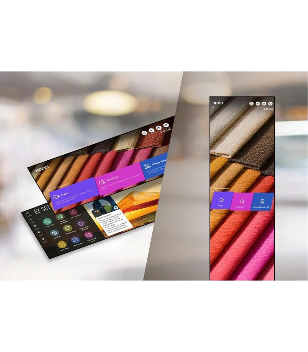 La puissance de l'affichage ne réside pas uniquement dans sa taille, mais dans sa capacité à gérer des contenus complexes. Le 86BH5F-M.AEU excelle dans ce domaine grâce à des fonctionnalités logicielles de pointe. Le mode Picture-by-Picture (4PBP) permet de diviser l'écran en quatre zones pour diffuser simultanément différentes publicités, flux d'informations ou vidéos sans nécessiter de calibrage ou de matériel externe complexe. Imaginez afficher les promotions, les actualités et un flux vidéo en direct, le tout sur une seule surface ! De plus, l'écran prend en charge la configuration en carrelage (Tiled Scene), permettant des installations massives et immersives jusqu'à 15x15, offrant un impact visuel sans précédent pour les grandes façades ou les murs intérieurs.