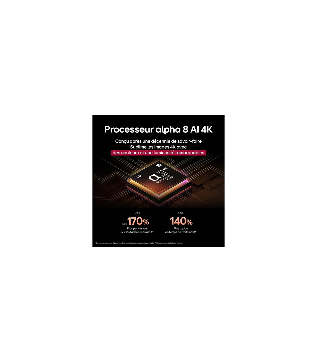 Plongez au cœur du spectacle avec le LG 86QNED86A6A, TV intelligente 86" (218 cm) au design ultra-fin et bords discrets, parfaite pour le home cinéma. Sa dalle 4K Ultra HD (3840 x 2160) QNED combine Quantum Dot + NanoCell pour des couleurs précises et des noirs profonds, tandis que le HDR (HDR10, HLG, Dolby Vision) et AMD FreeSync garantissent fluidité et contraste optimisés, idéal films et jeux. Propulsée par le processeur α7 AI 4K, l’image est upscalée avec netteté et fluidité 120 Hz. Côté son, AI Sound, Dolby Atmos et Clear Voice offrent une scène audio immersive. Smart TV sous webOS, avec accès rapide aux applis de streaming et assistants vocaux. Connectivité complète : Wi‑Fi, Bluetooth, 4x HDMI 2.1, 2x USB, LAN, optique, CI+, eARC, ALLM, VRR. Profitez d’un contrôle simple, d’une connectique riche et d’une expérience cinéma à domicile spectaculaire.