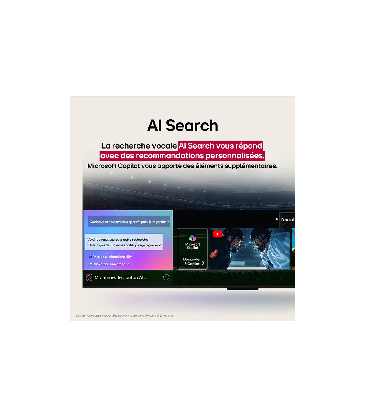 Au cœur de l’écran, un processeur d’intelligence artificielle de nouvelle génération analyse et optimise en temps réel chaque source. L’upscaling 4K affine les contenus HD, la gestion avancée du contraste et du color mapping garantit une image équilibrée et fidèle, tandis que la réduction du bruit préserve la netteté sans artifice. Les peaux sont naturelles, les ciels plus propres et les scènes complexes restent parfaitement maîtrisées.