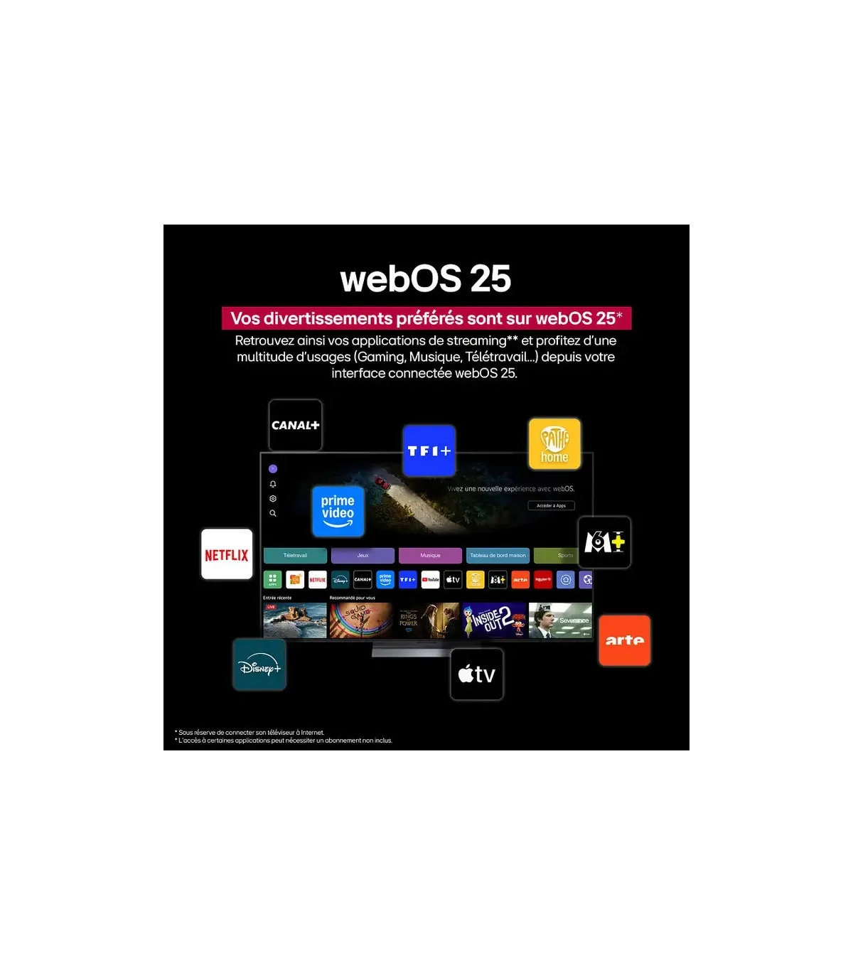 Avec sa plateforme webOS intégrée, ce téléviseur intelligent vous donne accès à une multitude de services en ligne tels que Netflix, YouTube ou encore Amazon Prime Video directement sur votre grand écran. Vous pouvez donc profiter facilement et rapidement du meilleur du divertissement numérique.
