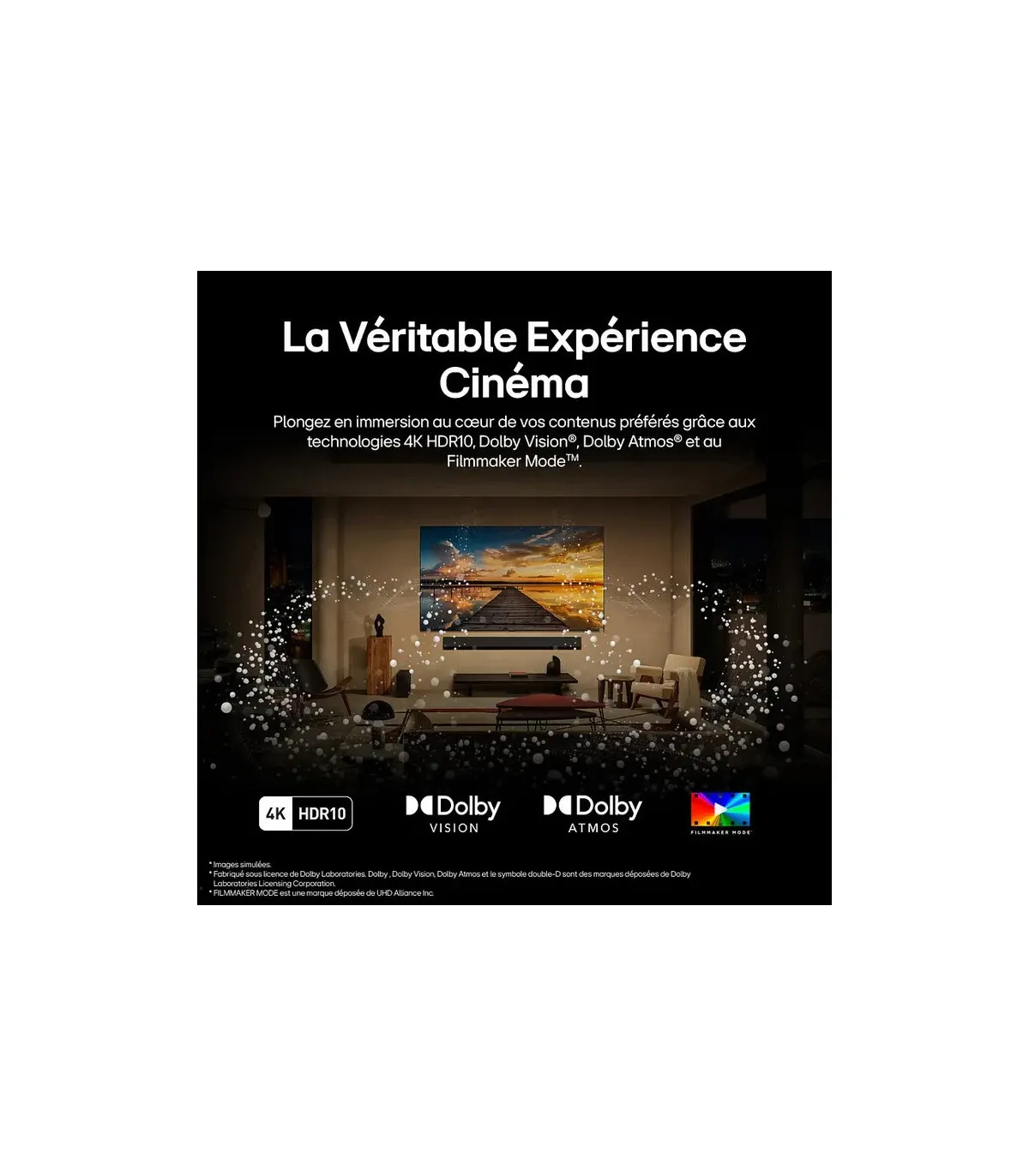 Au-delà d'une image époustouflante, elle propose également un système audio puissant pour accompagner vos contenus favoris. Doté du système Dolby Atmos, il crée un paysage sonore en trois dimensions qui immerge les spectateurs dans l'action comme jamais auparavant.