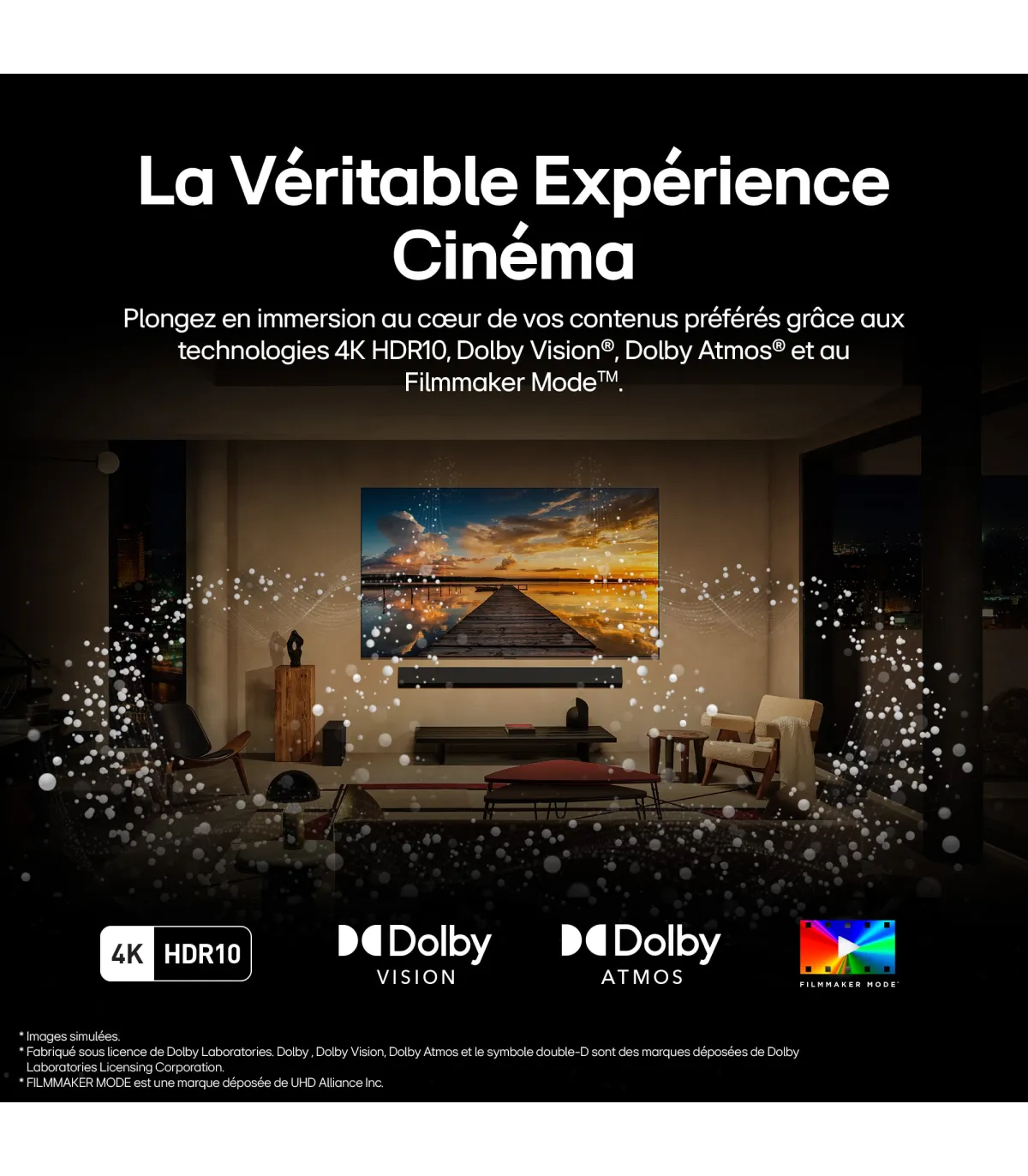 Découvrez l’exceptionnel LG OLED55G54LW, conçu pour sublimer votre salon avec une image d’une précision inégalée et un design galerie ultra-fin. Sa dalle OLED auto-émissive offre des noirs absolus, des contrastes infinis et des couleurs d’une fidélité remarquable, tandis que le processeur α haut de gamme optimise chaque scène en temps réel pour une fluidité et une netteté saisissantes. Les films, séries et jeux vidéo gagnent en intensité grâce à la prise en charge des principaux formats HDR et à un son immersif qui renforce l’impact cinématographique. Les joueurs profitent d’une réactivité extrême et d’une compatibilité avancée pour une expérience compétitive. L’interface Smart TV est intuitive, avec accès rapide à vos plateformes préférées et contrôle vocal simplifié. Installation murale élégante et gestion de câbles discrète pour une intégration parfaite. Caractéristiques clés: Écran 55" 4K UHD OLED, Noirs infinis et couleurs riches, Processeur α avancé, HDR (Dolby Vision, HDR10), Gaming 120 Hz, VRR, ALLM, HDMI 2.1, webOS avec Alexa/Google Assistant, Wi‑Fi/Bluetooth, Design galerie mural.