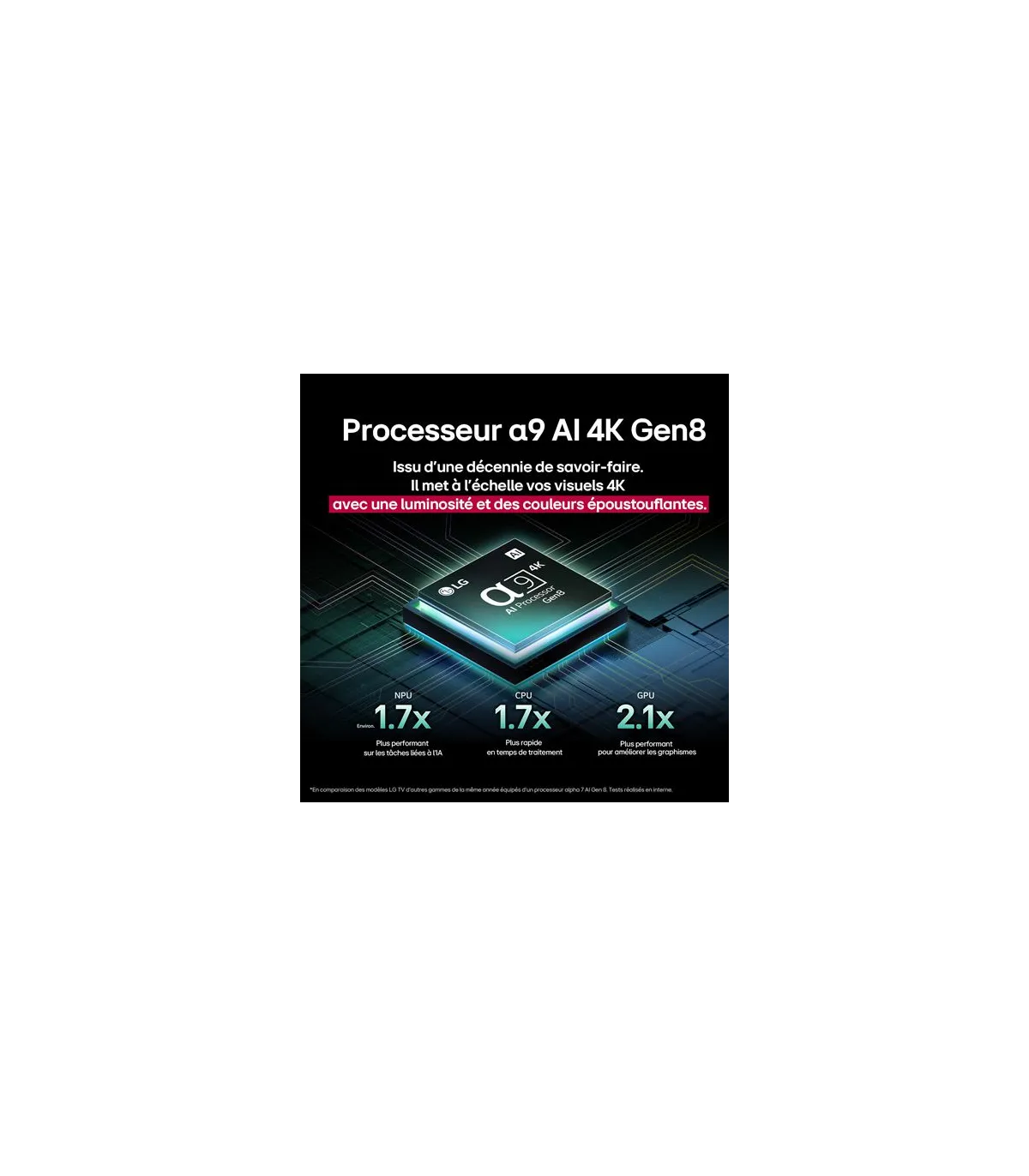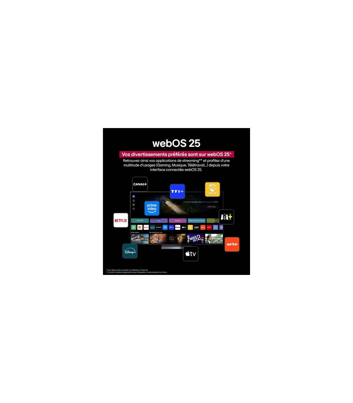 Découvrez le LG OLED77C54LA 77" et offrez-vous une expérience cinéma à domicile avec une dalle OLED 4K UHD aux noirs parfaits et couleurs éclatantes, compatible HDR10 / Dolby Vision pour un réalisme saisissant. Son taux de rafraîchissement 120 Hz assure une fluidité exemplaire pour les films d’action, le sport et le gaming, avec ALLM/VRR pour des parties ultra-réactives. Propulsé par webOS Smart TV, ce téléviseur connecté offre un accès immédiat aux meilleures applications de streaming, contrôle vocal et une interface intuitive. Côté connectivité, profitez de HDMI 2.1, Wi‑Fi et Bluetooth pour relier consoles, barres de son et périphériques en toute simplicité. Son design ultra-fin s’intègre élégamment à votre salon, tandis que le processeur intelligent optimise chaque scène pour une image immersive et un son plus précis. Choisissez le téléviseur OLED 77 pouces LG pour une image exceptionnelle, une navigation fluide et des fonctionnalités smart complètes, pensées pour sublimer vos contenus et booster votre plaisir de visionnage au quotidien.