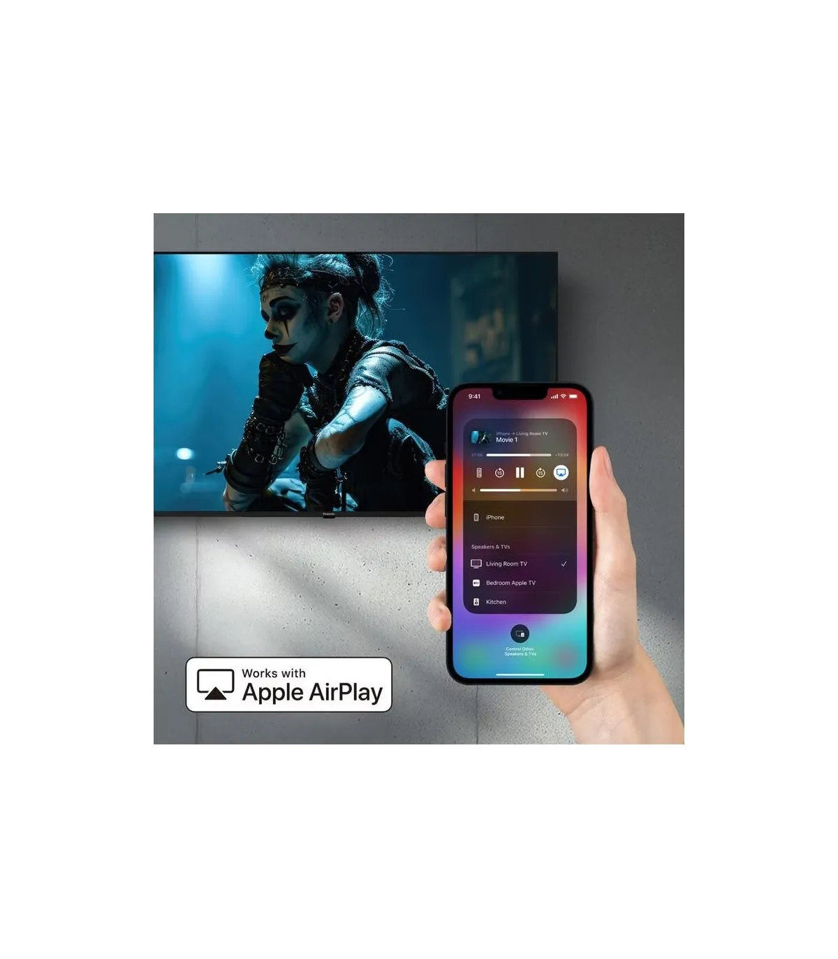 Le module Wi-Fi intégré permet un accès rapide aux services en ligne et au streaming sans câble. Le Bluetooth est également pris en charge pour connecter casques audio, barres de son ou autres périphériques sans fil. Ces fonctionnalités garantissent une installation épurée et flexible.