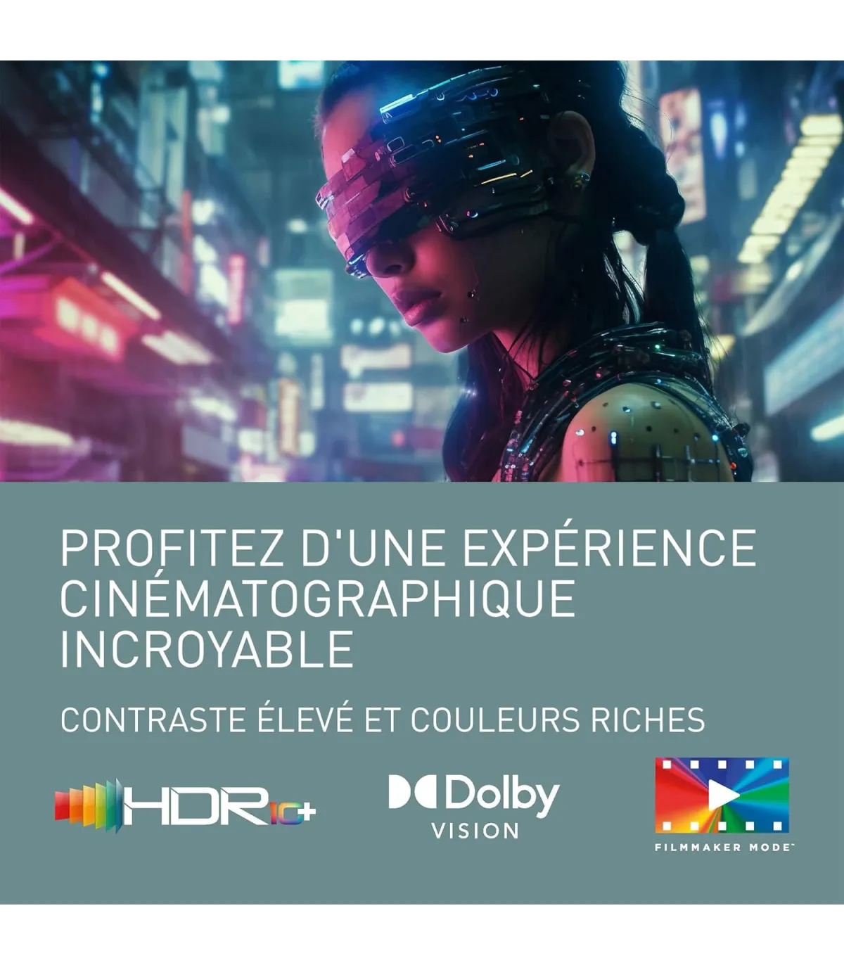 Plongez au cœur du cinéma avec le Panasonic TV65Z80AEZ, un téléviseur 65" (164 cm) 4K UHD à dalle OLED offrant des noirs absolus et des couleurs éclatantes. Son design bord à bord au cadre fin sublime votre salon, tandis que le processeur HCX Pro AI optimise chaque scène en temps réel. Profitez d’une image d’une précision exceptionnelle en 3840 x 2160 avec prise en charge des contenus HDR. Le son immersif est assuré par des haut-parleurs calibrés, compatibles Dolby Atmos pour une expérience home cinéma. La Smart TV s’appuie sur Fire TV avec l’OS Panasonic fluide et intuitif, pour accéder instantanément à vos applications préférées. Côté connectique : HDMI, USB, sortie audio optique, port Ethernet, CI+, et prise casque. Restez connecté avec le Wi‑Fi intégré et le Bluetooth pour vos barres de son et casques. Offrez‑vous l’excellence visuelle et sonore avec ce Panasonic TV65Z80AEZ, pensé pour le divertissement premium.