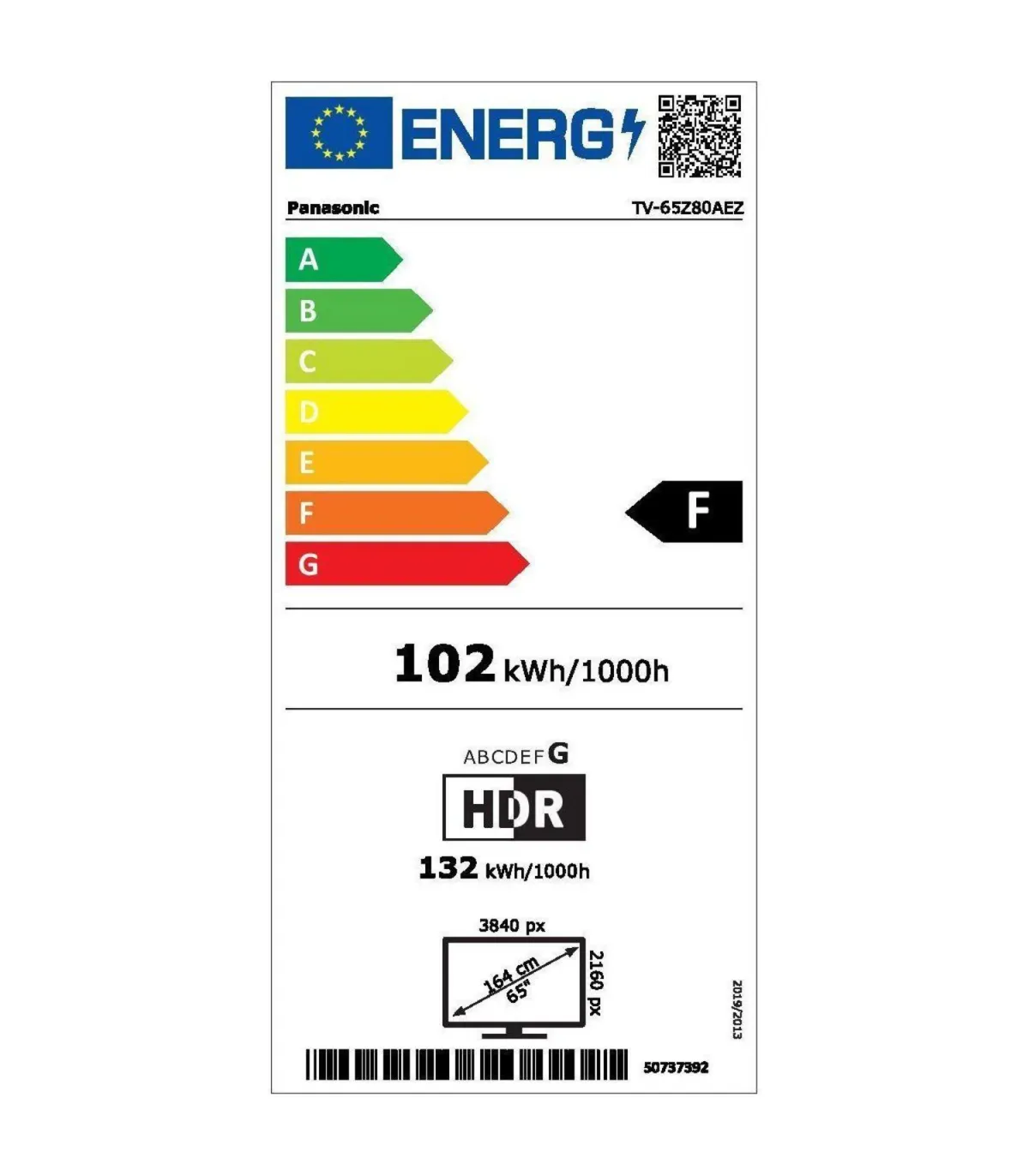 La technologie OLED optimise la consommation scène par scène, et le mode éco ajuste automatiquement la luminosité ambiante. La classe énergétique F assure un bon compromis entre performance d’affichage et sobriété, avec des options de gestion (veille, minuterie, capteur de lumière) pour réduire l’empreinte énergétique au quotidien.