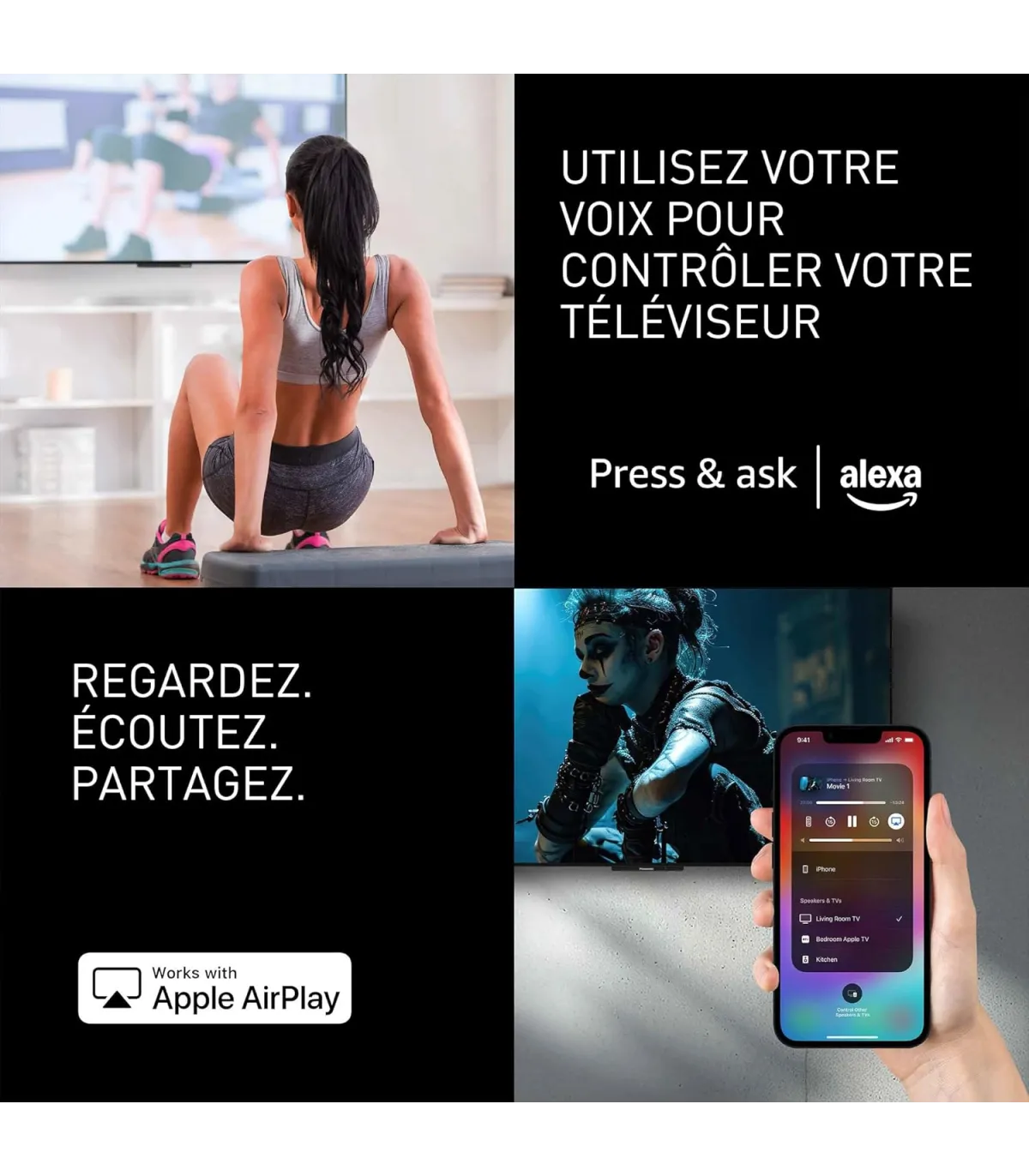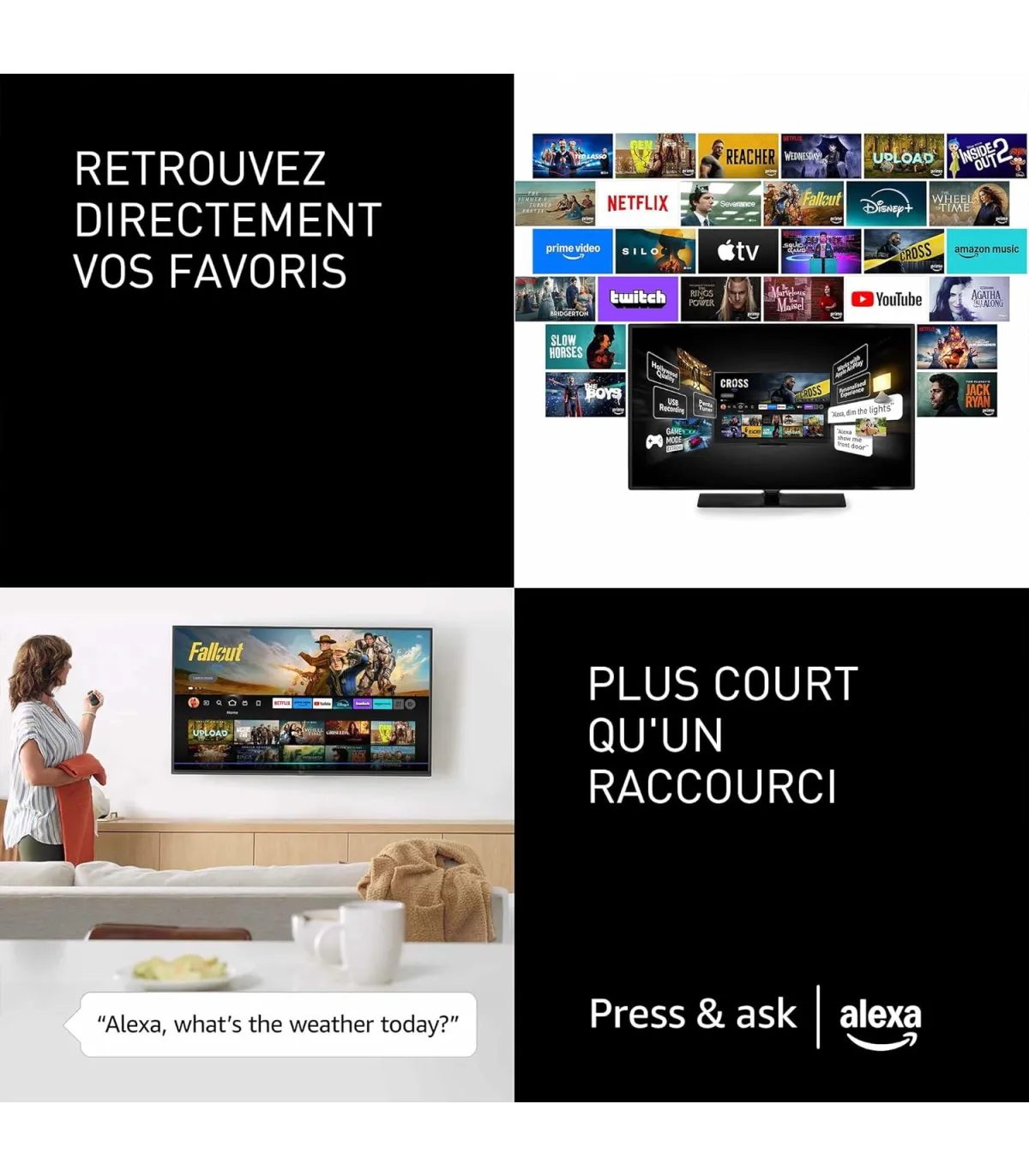 • Accès aux applications : Netflix, Prime Video, Disney+, YouTube