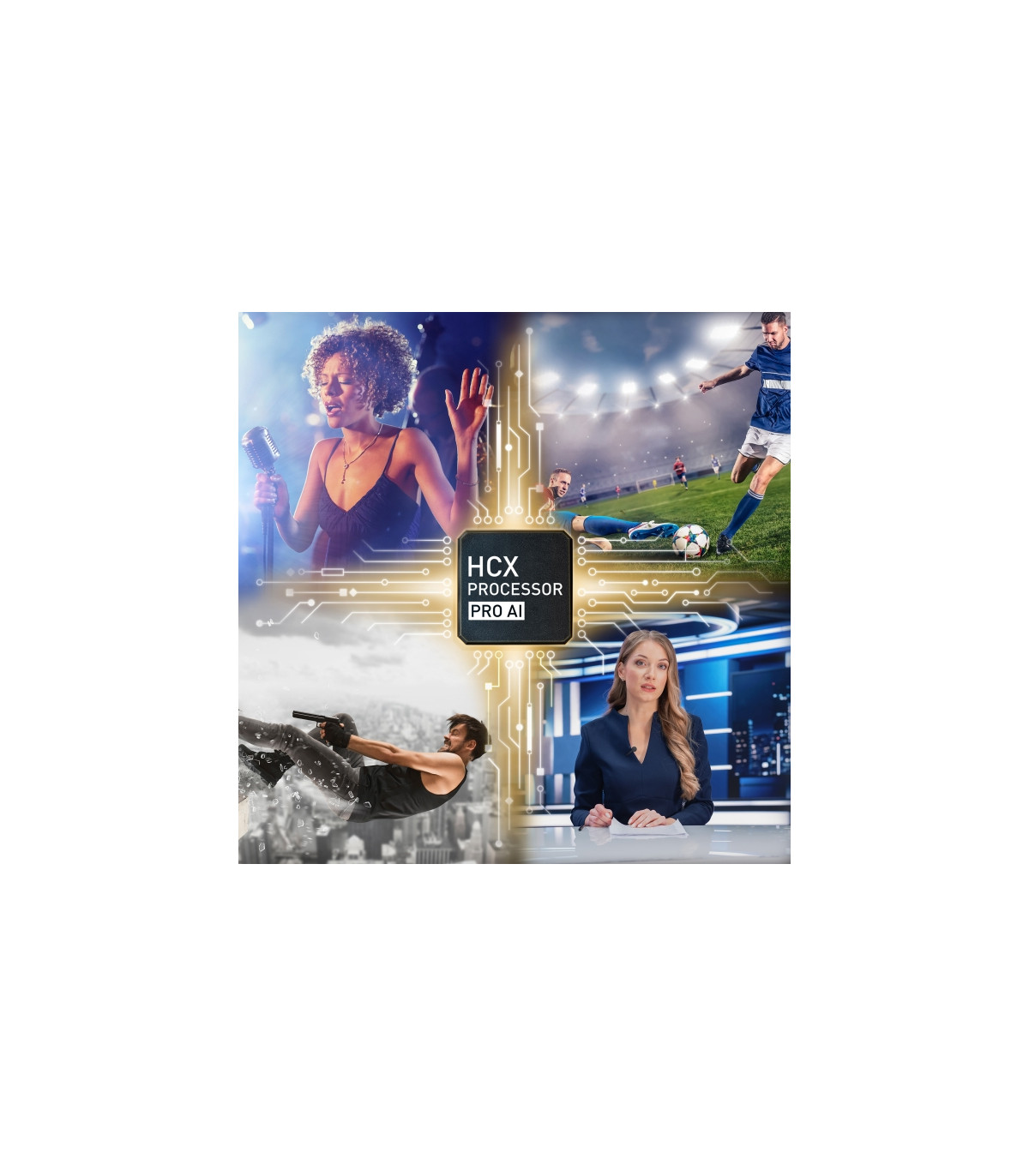 Le processeur intelligent HCX Pro Intelligent Processor optimise chaque image pour assurer la meilleure qualité possible. Il analyse chaque pixel individuellement pour ajuster couleur, contraste et clarté afin que vous puissiez profiter du meilleur rendu visuel possible.