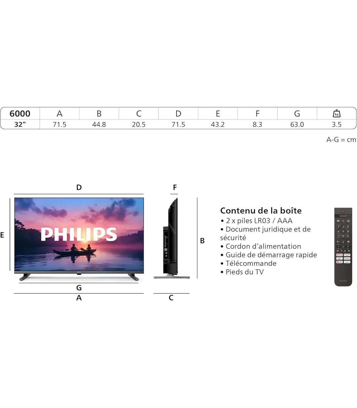 Découvrez le téléviseur Philips 32PFS6000/12, le compagnon idéal pour votre salon, chambre ou espace multimédia. Son écran 32" au format compact offre une image Full HD 1080p nette et détaillée, sublimée par un rétroéclairage LED pour des contrastes profonds et des couleurs naturelles. Profitez d’un son clair avec des haut-parleurs intégrés optimisés, tandis que sa conception fine et élégante s’intègre harmonieusement à tous les intérieurs. Connectez facilement vos sources grâce à ses ports HDMI (x2) et USB pour lire photos, vidéos et musiques. La navigation est intuitive, avec un menu simple et réactif, idéal pour toute la famille. Sa faible consommation énergétique contribue à réduire votre facture d’électricité sans compromis sur la qualité. Points clés : Écran 32" – Résolution Full HD 1080p – Technologie LED – 2x HDMI – 1x USB – Réduction du bruit – Mode jeu/cinéma – Design fin – Faible consommation – Installation facile. Offrez-vous l’essentiel de la TV Philips : performance, fiabilité et style au quotidien.