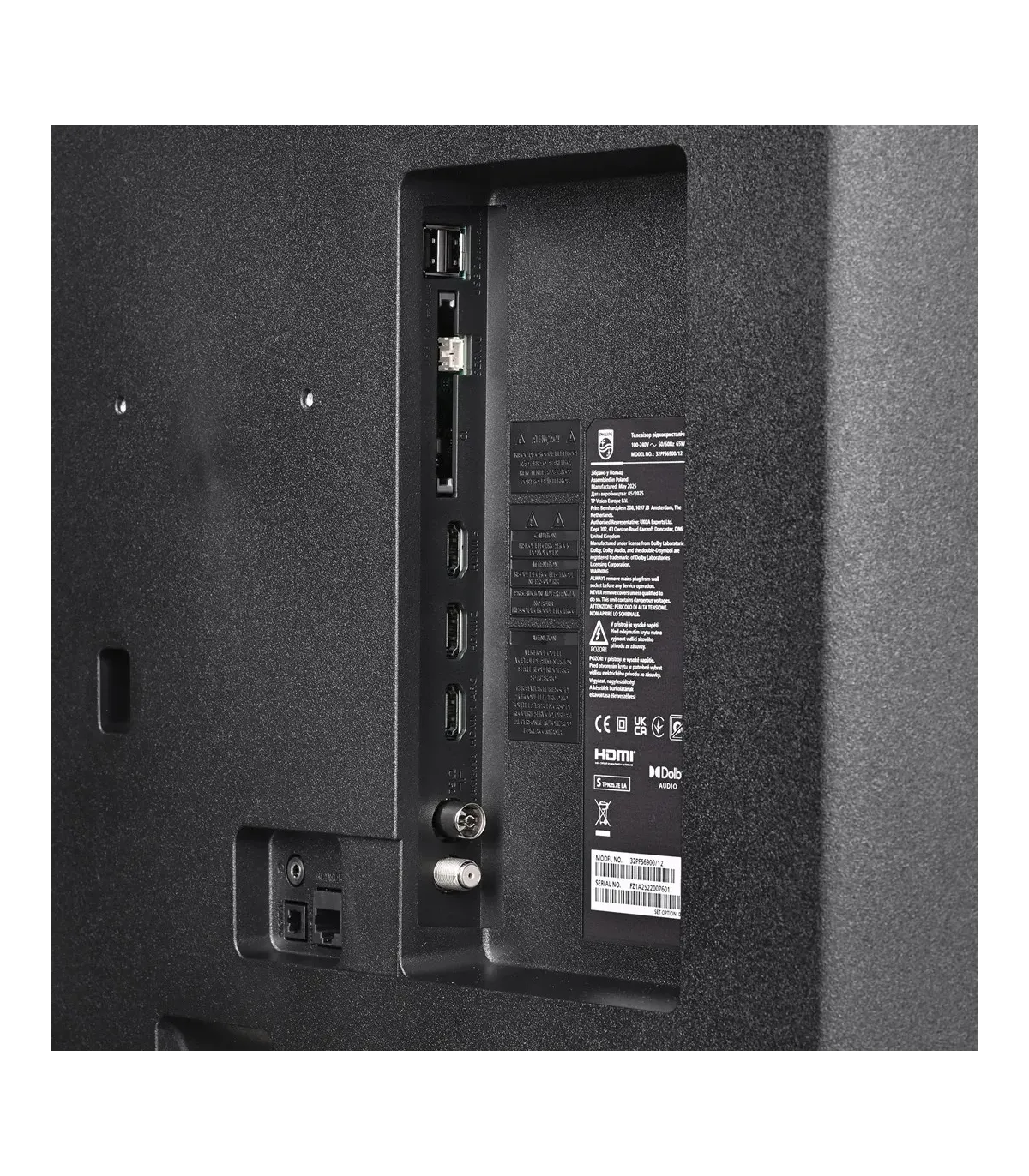 Découvrez le téléviseur Philips 32" Full HD qui allie élégance et performance. Finition Noir avec tribune Noir, ce modèle LED plat de 81,3 cm (32") offre une image nette 1920 x 1080 pixels, 60 Hz et traitement Philips Pixel Plus HD. Compatible HDR10 / Dolby Vision / HLG, il prend en charge la réduction du bruit et Ambilight pour une immersion unique. Son immersif avec Dolby Atmos, 12 W RMS via 2 haut-parleurs. Smart TV sous Titan OS avec Netflix, Amazon Prime Video, Disney+, YouTube, HBO, BBC iPlayer, HbbTV, EPG 8 jours, télétexte 1000 pages, Alexa compatible, EasyLink (CEC). Connectivité complète: Wi‑Fi 4, 3x HDMI avec ARC et HDCP 2.3, 1x USB 2.0, formats vidéo HEVC/H.265, VP9, H.264, audio MP3/FLAC/AAC/WAV, images JPEG/PNG/GIF/BMP/HEIF, sous‑titres SRT/ASS/SSA/SUB/SMI/TXT. Efficacité: 27 kWh/1000 h (SDR) – classe F, 39 kWh/1000 h (HDR) – classe G, veille 2 W, mode Économie d’énergie. Design compact: sans support 728 x 4