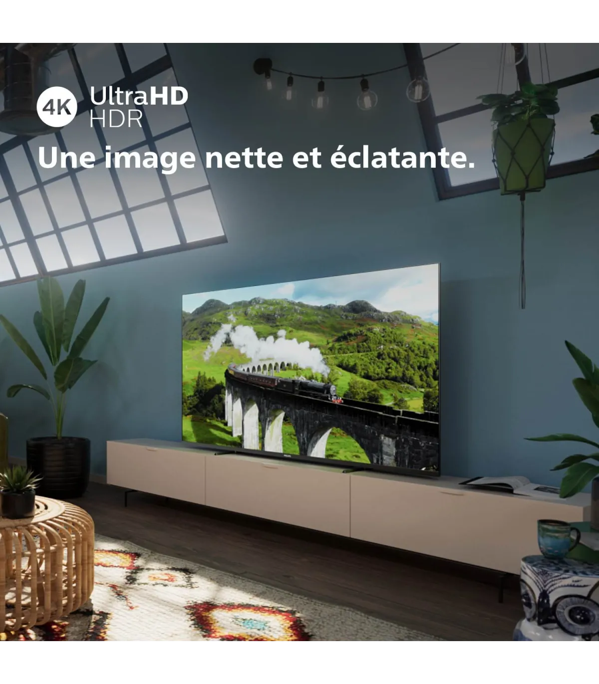 Découvrez le Philips 43PUS7608/12, une magnifique TV intelligente LED 4K UHD de 43 pouces qui transforme votre expérience de visionnage avec sa résolution époustouflante de 3840 x 2160, améliorée par Dolby Vision et HDR10+ pour des couleurs vives et un contraste exceptionnel, profitez d'un son immersif avec Dolby Atmos, tandis que les assistants vocaux intégrés comme Amazon Alexa et Google Assistant rendent la navigation sans effort, équipée de trois ports HDMI, ce design élégant prend en charge les jeux rapides grâce à la technologie HDMI 2.1 et offre également une connectivité sans faille via Wi-Fi, garantissant que vous avez accès à tous vos services de streaming préférés à portée de main.