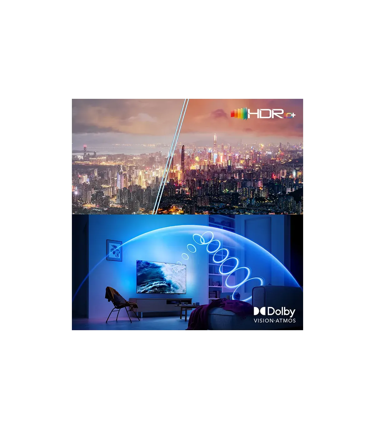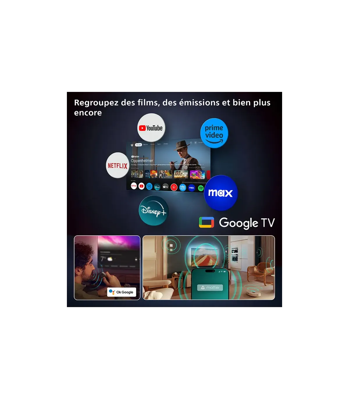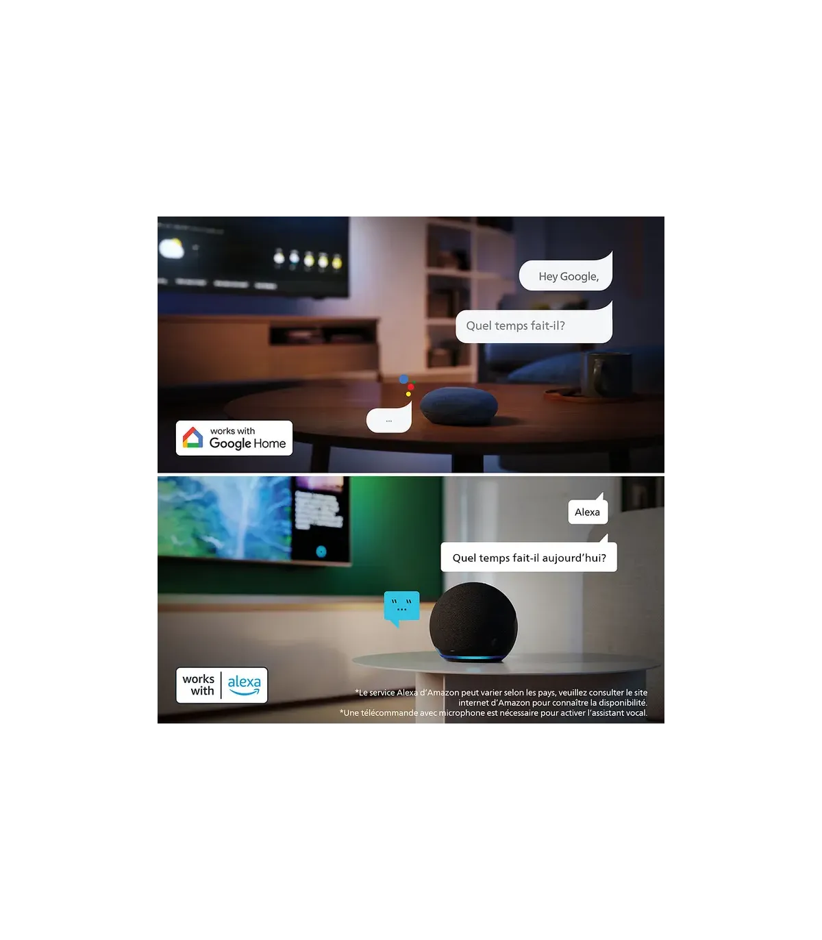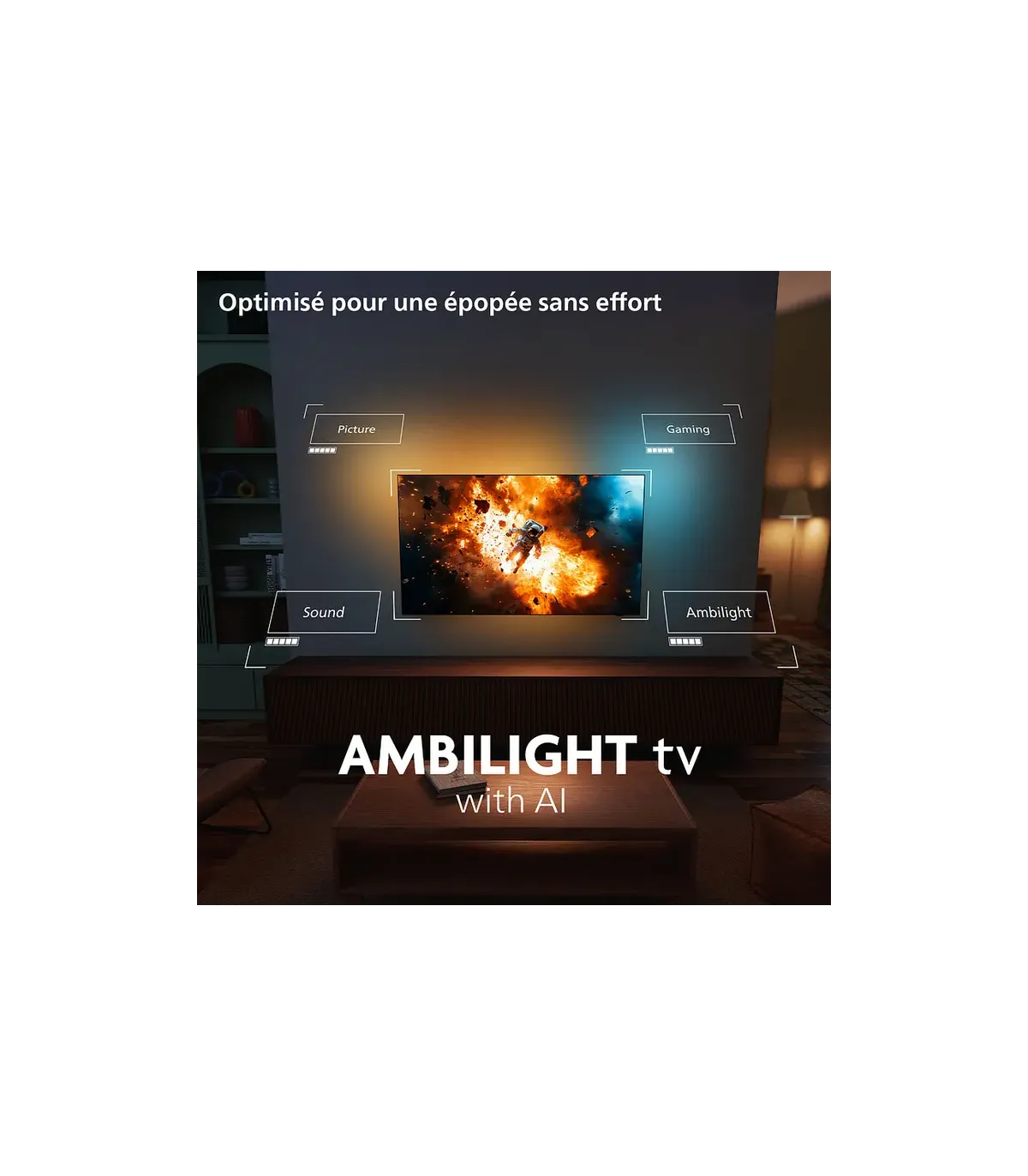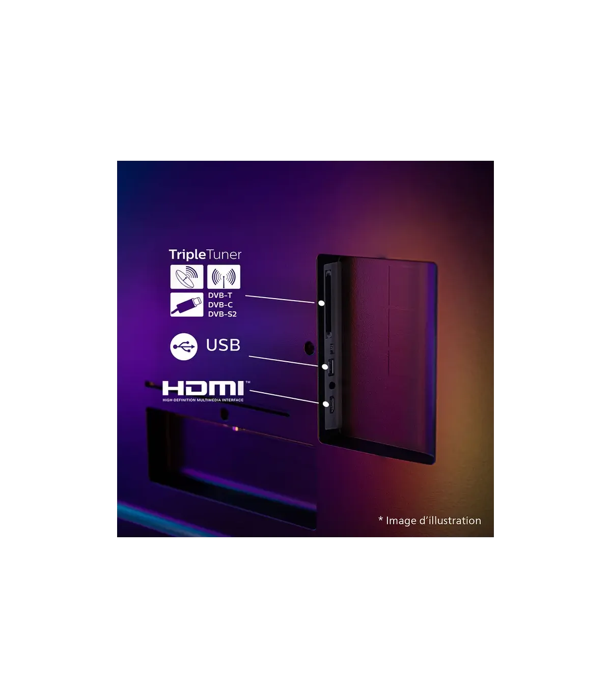 Offrez-vous une expérience visuelle d'exception avec le Philips 55OLED910/12, un téléviseur 55 pouces alliant performance et élégance pour transformer votre salon en véritable salle de cinéma. Grâce à sa dalle OLED 4K UHD avec une résolution de 3840 x 2160 pixels, chaque image révèle des noirs absolus, des contrastes infinis et une palette de couleurs d'une richesse saisissante. Compatible HDR10+, Dolby Vision et Dolby Atmos, il garantit une immersion totale aussi bien en image qu'en son. Son moteur de traitement haute performance assure une fluidité remarquable avec un taux de rafraîchissement de 120 Hz, idéal pour le gaming et les contenus sportifs. Équipé du système Google TV, il centralise vos applications et plateformes de streaming préférées en toute simplicité. La connectivité est complète avec plusieurs ports HDMI 2.1, le Wi-Fi, le Bluetooth et des entrées USB, le tout dans un design ultra-fin et raffiné qui s'intègre parfaitement à tous les intérieurs modernes.