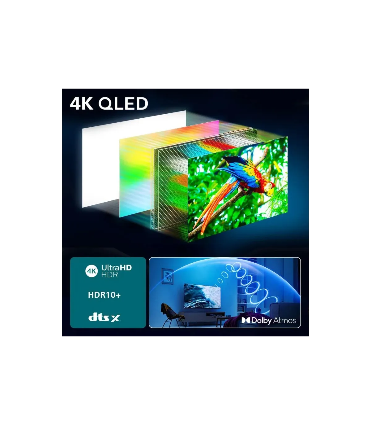 Découvrez le téléviseur Philips 75PUS7810/12, un 75" QLED 4K conçu pour sublimer chaque instant. La technologie Quantum Dot révèle des couleurs éclatantes et une précision exceptionnelle, tandis que HDR10+ optimise cadre par cadre les contrastes et les détails, des ombres profondes aux hautes lumières. Profitez d’un son immersif avec Dolby Atmos et DTS:X, pour des scènes qui prennent vie. La plateforme Titan OS vous donne un accès rapide à vos applications de streaming préférées et s’intègre parfaitement à votre maison connectée grâce à Matter, Alexa et Apple AirPlay. Les gamers bénéficient d’une expérience fluide via HDMI 2.1, VRR et un faible input lag automatique. Côté image, comptez sur Pixel Precise Ultra HD, Micro Dimming, Ultra Resolution et Crystal Clear pour une netteté remarquable. Design européen soigné, bords fins, matériaux responsables, et fonctionnalités pratiques comme Vocal Boost, Wi‑Fi, Bluetooth, 3x HDMI, 2x USB, VESA 400x300. Puissance audio 20 W, angle de vue 178°, consommation 80 W. Inclus: télécommande, piles, socle, câbles et guides. Link, prête à publier sur mon site e‑commerce.