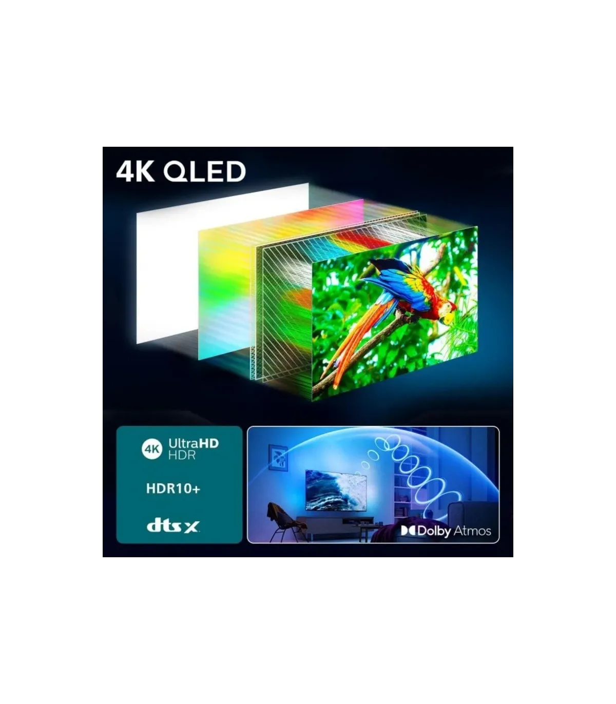 Découvrez le Philips Ambilight 43PUS8400, un téléviseur pensé pour le home cinéma. Son design épuré aux bords fins sublime votre salon, tandis que l’Ambilight 3 côtés élargit l’immersion. Profitez d’une image éclatante grâce à la dalle 43" (108 cm) 4K UHD (3840 x 2160) QLED, compatible HDR10/HLG pour des couleurs riches et des contrastes profonds. Le processeur P5 optimise netteté, mouvement et upscaling. Côté audio, bénéficiez d’un son clair avec traitement Dolby Atmos pour une scène sonore enveloppante. La Smart TV sous Google TV offre un accès fluide aux apps et à la commande vocale via Google Assistant. Connectivité complète : Wi‑Fi double bande, Bluetooth, HDMI (eARC/ARC), USB, Ethernet, sortie audio optique, prise casque, CI+. Idéal pour films, séries et jeux, il allie performance, élégance et simplicité, pour une expérience 4K premium à domicile.