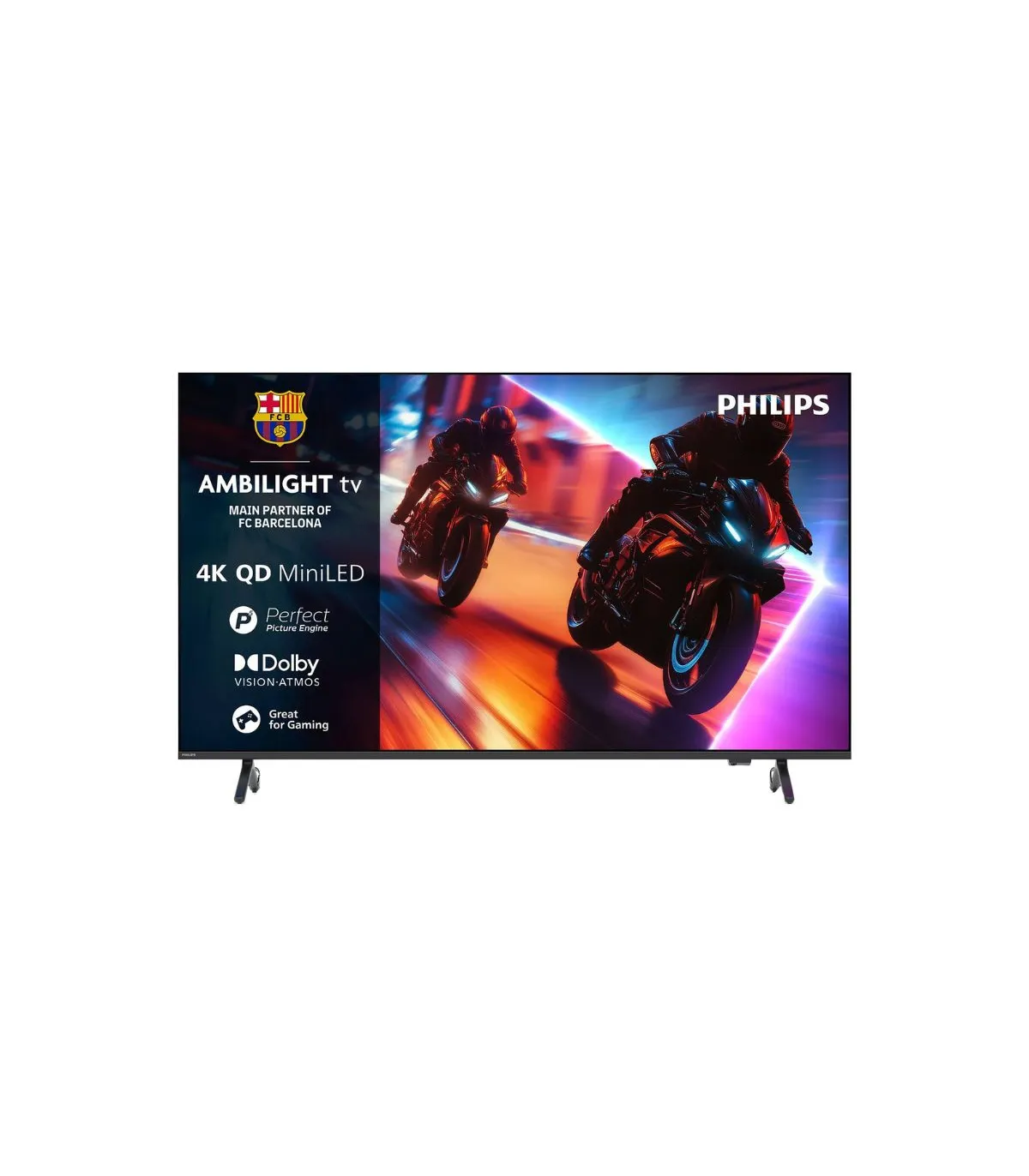Plongez au cœur de l’image avec le Philips Ambilight 55MLED920, TV 55" (139 cm) 4K UHD (3840 x 2160) à technologie QD MiniLED pour des noirs profonds, un contraste saisissant et des couleurs éclatantes. Son design ultra-fin aux bords presque invisibles sublime votre salon, tandis que l’Ambilight enveloppe le mur de lumière pour une immersion totale home cinéma. Propulsé par le processeur P5 de Philips, il optimise netteté, mouvement et HDR. Le système d’exploitation Titan OS offre une plateforme Smart TV fluide avec contenus, profils et commandes vocales. Profitez d’un son clair et puissant avec prise en charge Dolby Atmos. Côté connectique: HDMI (eARC/ARC), USB, sortie optique, Ethernet, prise casque et CI+. La connectivité est complète avec Wi‑Fi double bande et Bluetooth pour barres de son, manettes et casques. Compatibilité HDR10/HDR10+/Dolby Vision et modes gaming pour une réactivité exemplaire. Le choix premium pour films, séries et sports.
