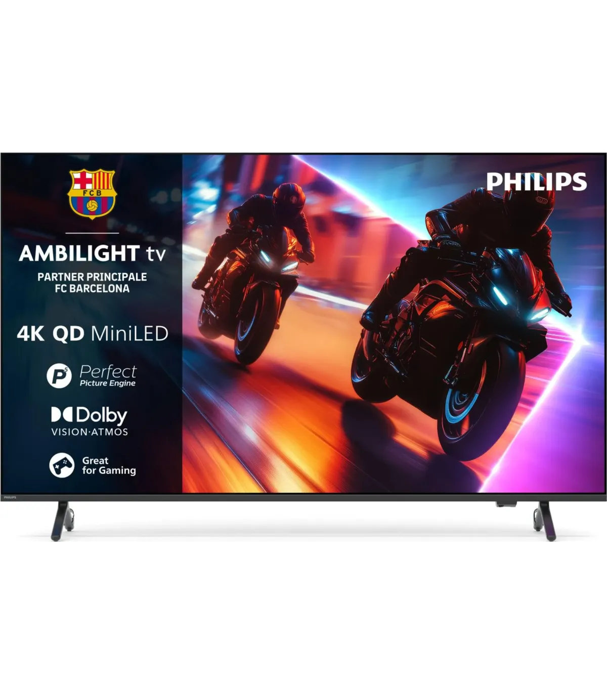 Plongez au cœur du spectacle avec le Philips Ambilight 65MLED920 : un téléviseur 65" (164 cm) au design ultra-fin avec cadres élégants et Ambilight immersif sur 3 côtés. Son écran 4K UHD (3840 x 2160) QD MiniLED offre des noirs profonds, une luminosité maîtrisée et des couleurs éclatantes, boostés par le processeur P5 pour une mise à l’échelle et une fluidité impeccables. Côté son, profitez d’un audio puissant et précis, idéal pour le home cinéma. Animé par Titan OS, ce modèle propose une plateforme Smart TV complète avec applications, assistant vocal et Chromecast intégré. Connectivité complète avec HDMI (eARC/ARC), USB, sortie audio optique, Ethernet, CI+, et prise antenne. Sans fil, il intègre Wi‑Fi double bande et Bluetooth pour casques, barres de son et manettes. Parfait pour films, séries et jeux, il combine fréquence élevée, faible latence et compatibilités HDR avancées pour une expérience cinéma à domicile. Toutes les spécifications clés sont intégrées et prêtes à l’emploi.