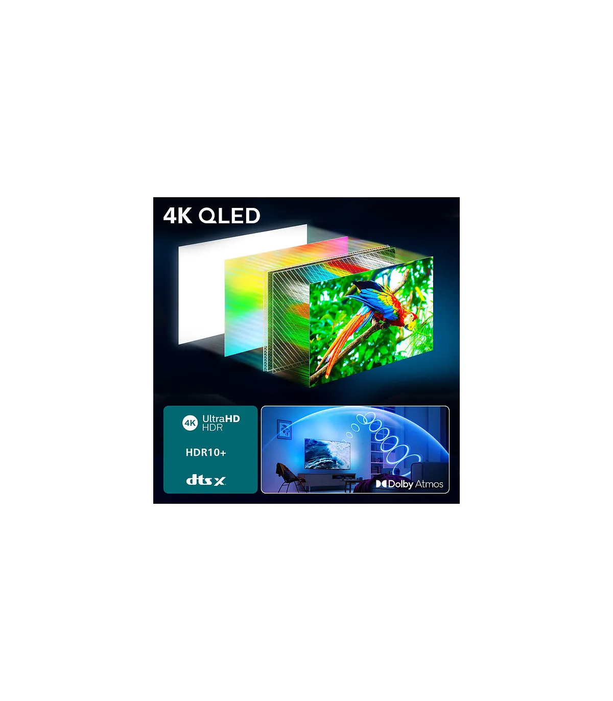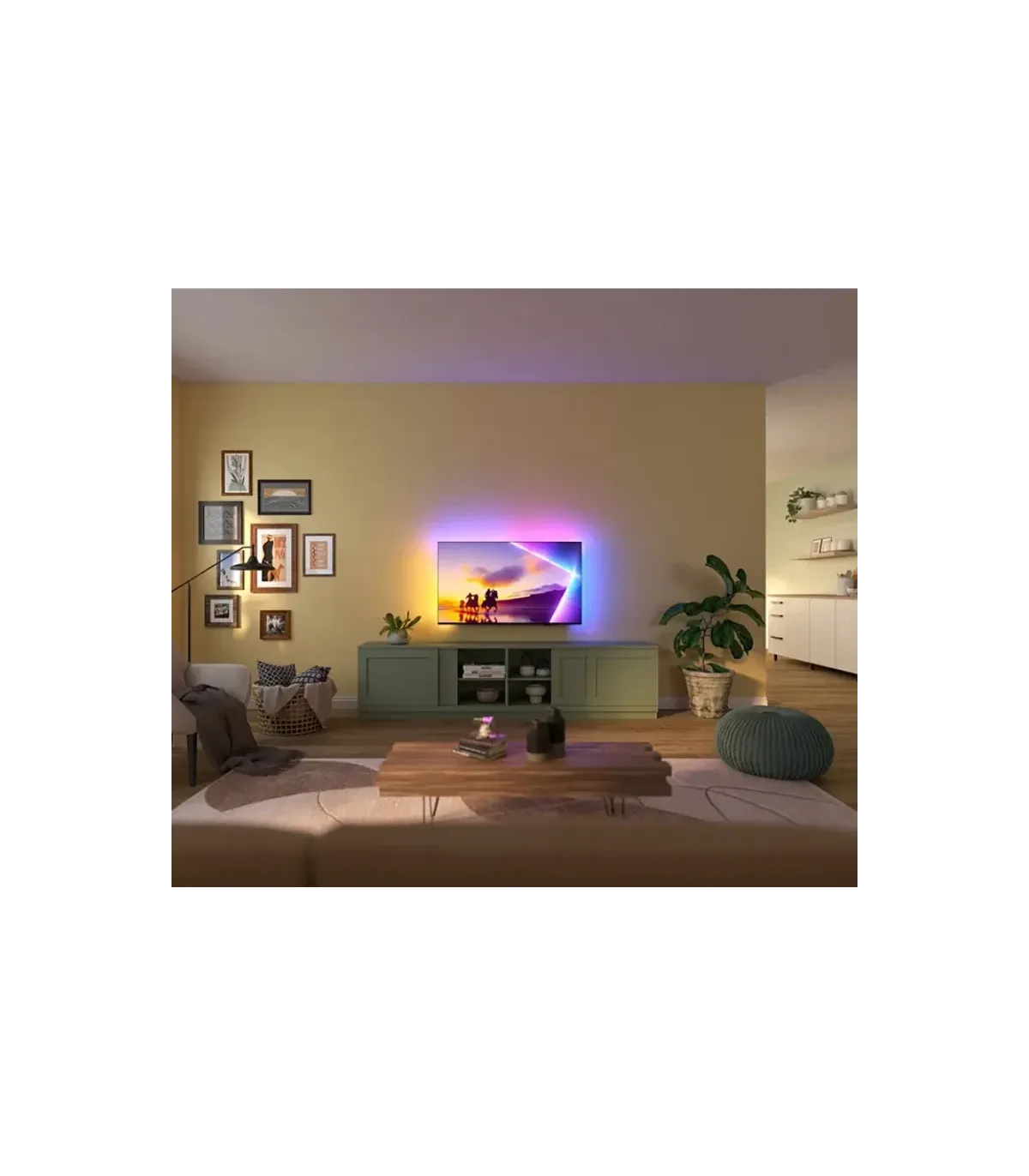 Plongez au cœur de l’image avec le téléviseur Philips Ambilight 85PUS8510 85" (215 cm) 4K UHD QLED. Son design fin et élégant sublimera votre salon, tandis que l’Ambilight enveloppe l’écran d’un halo lumineux immersif. Profitez d’une image d’une précision exceptionnelle grâce à la résolution 3840 x 2160, au QLED riche en couleurs et aux traitements du processeur puissant Philips. Côté audio, bénéficiez d’un son clair et enveloppant pour une expérience home cinéma aboutie. La Smart TV sous Titan OS offre une navigation fluide, des applications populaires et le contrôle vocal. Connectivité complète avec Wi‑Fi, Bluetooth, HDMI, USB, sortie audio, port Ethernet, et prise antenne pour toutes vos sources. Les joueurs apprécieront la réactivité et la fluidité de l’affichage. Le Philips Ambilight 85PUS8510 combine qualité d’image, puissance de traitement, connectique polyvalente et smart TV intuitive pour transformer chaque séance en spectacle. Optez pour une expérience grand format, immersive et performante.