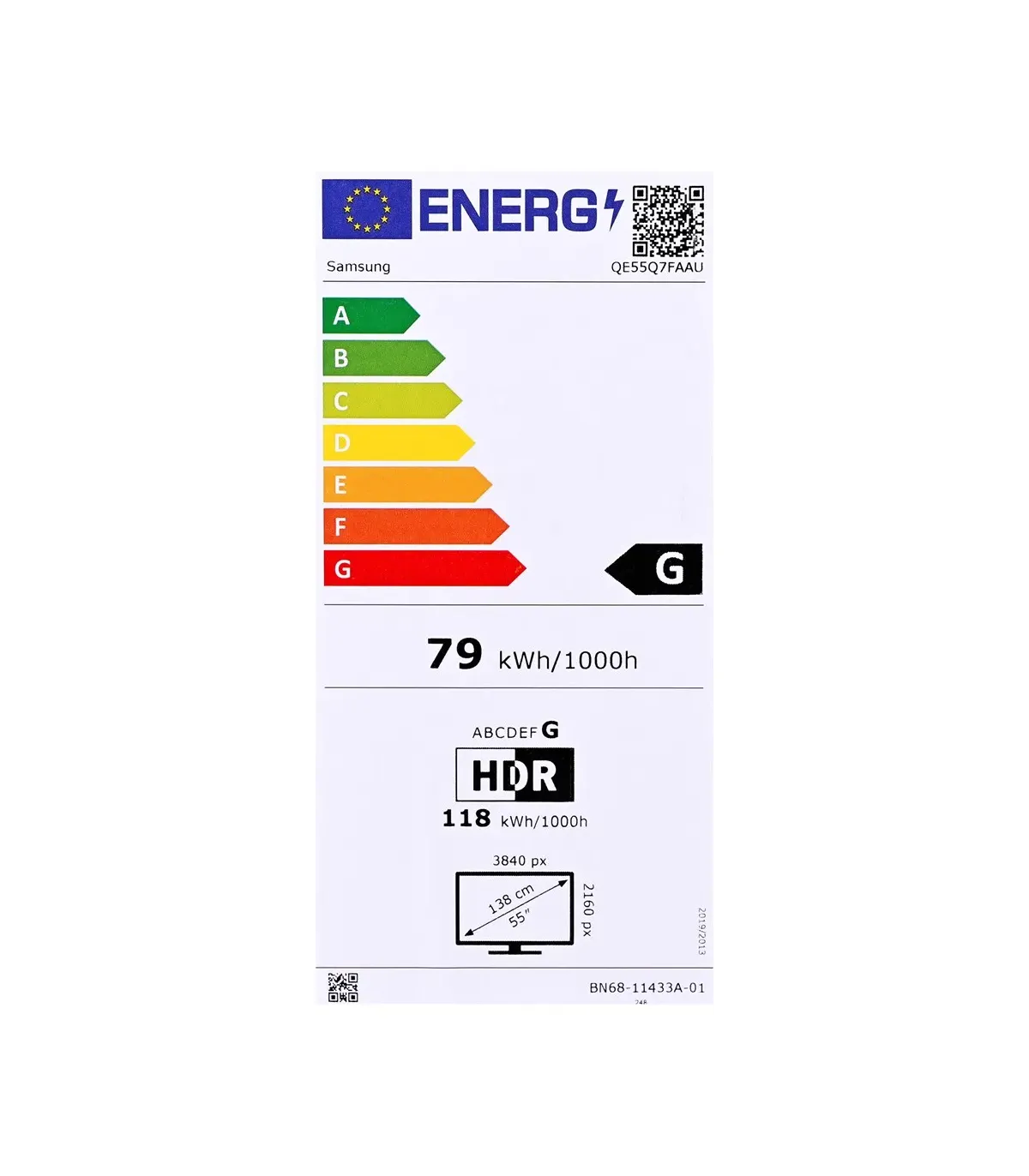 Découvrez le Samsung Q7F QE55Q7FAAU, un téléviseur QLED 55" 4K UHD qui sublime chaque scène avec des couleurs riches et un contraste profond. Grâce à la technologie Quantum Dot, profitez d’une luminosité éclatante et d’une précision colorimétrique exceptionnelle pour des films, séries et jeux plus immersifs. Son design épuré avec gestion des câbles quasi invisible s’intègre parfaitement à votre intérieur, tandis que le mode Ambiant transforme l’écran en œuvre d’art lorsqu’il est en veille. Le processeur puissant optimise chaque image en temps réel, et le système Smart TV offre un accès fluide à vos applications préférées. La connectivité avancée assure une installation simple et polyvalente pour toutes vos sources. Optez pour une expérience premium, élégante et intuitive. Caractéristiques clés: Écran 55" QLED 4K UHD (3840 x 2160), Quantum Dot pour 100% du volume colorimétrique, HDR premium pour des noirs profonds et des détails précis, Design épuré et gestion des câbles, Smart TV avec Wi‑Fi et apps, Compatibilité assistants vocaux.