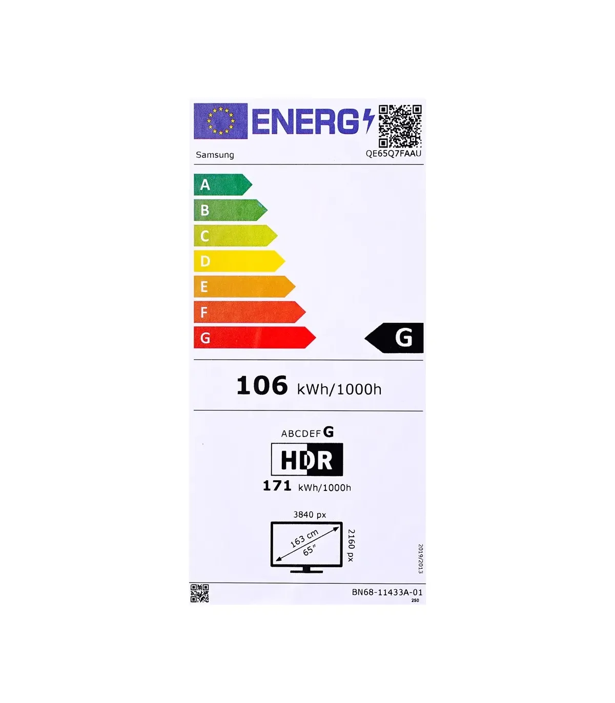 Découvrez le Samsung Q7F QE65Q7FAAU, un téléviseur QLED 65" (165,1 cm) 4K Ultra HD qui sublime vos contenus avec des couleurs éclatantes et un contraste profond grâce au Quantum HDR et au Mega contraste. Propulsé par le Processeur IA Q4 et le 4K Upscaling, il optimise chaque image, tandis que Motion Xcelerator assure une fluidité nette. Idéal pour le gaming avec ALLM, Game Motion Plus, HGiG, Super Ultra Wide Game View et Mini Map Zoom. L’expérience audio est immersive avec Object Tracking Sound Lite, Q‑Symphony et Son adaptatif. Smart TV sous Tizen, il intègre Samsung TV Plus, SmartThings (hub intégré), Alexa/Google Assistant/Bixby, AirPlay/Mirror, Vue multiple et Filmmaker Mode. Connectivité complète: Wi‑Fi 5, Bluetooth 5.3, eARC, 3x HDMI, USB 3.2, LAN, CI+ 1.4. Design 3 bords sans cadre noir, compatible VESA 400x300, support à pieds inclus. Efficacité énergétique classe G (SDR/HDR). Dimensions sans support: 1452,9 x 834 x 60,6 mm; avec support: 1452,9 x 879,5 x 267,