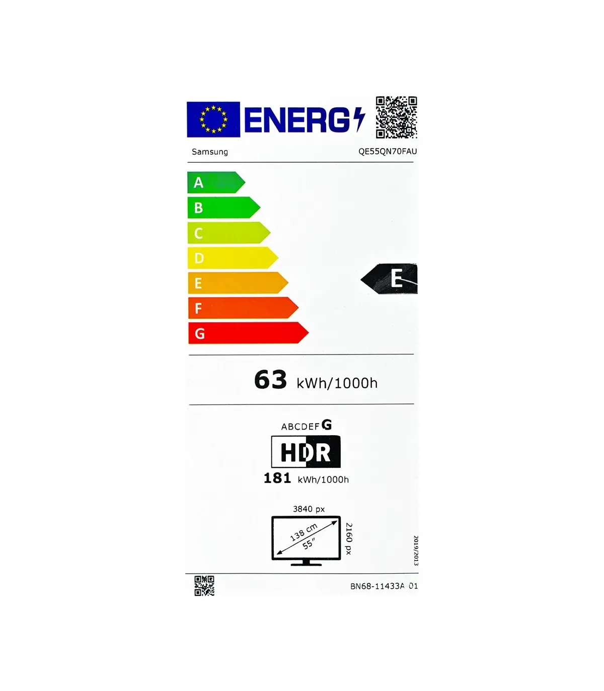 Découvrez la Samsung QE55QN70FAU 55" Neo QLED 4K, le téléviseur qui sublime vos contenus avec le processeur NQ4 AI Gen2, le 4K AI Upscaling et Neo Quantum HDR pour des contrastes profonds et des couleurs éclatantes. Son design 3 côtés sans cadre et son profil ultra-fin (25,7 mm sans support) s’intègrent élégamment à votre intérieur. Parfait pour le sport et le gaming grâce au taux de rafraîchissement natif 100 Hz, au 144 Hz pris en charge, à FreeSync Premium Pro et à Motion Xcelerator pour une fluidité exceptionnelle. Le son immersif OTS+ et l’AVA optimisent l’audio, tandis que Q‑Symphony et eARC assurent une parfaite synergie avec vos barres de son. Smart TV sous Tizen avec Wi‑Fi 5, Bluetooth 5.3, Alexa/Apple AirPlay 2, Samsung TV Plus, Multi View et navigateur web. Connectivité complète: 4x HDMI, 2x USB, LAN, Optique, CI+ 1.4. Dimensions sans support: 1232,9 x 709,2 x 25,7 mm, avec support: 1232,9 x 765,7 x 247,4 mm, poids 15 kg. Efficacité énergétique: SDR classe E (63 kWh/1000 h), HDR classe G (181 kWh/1000 h).