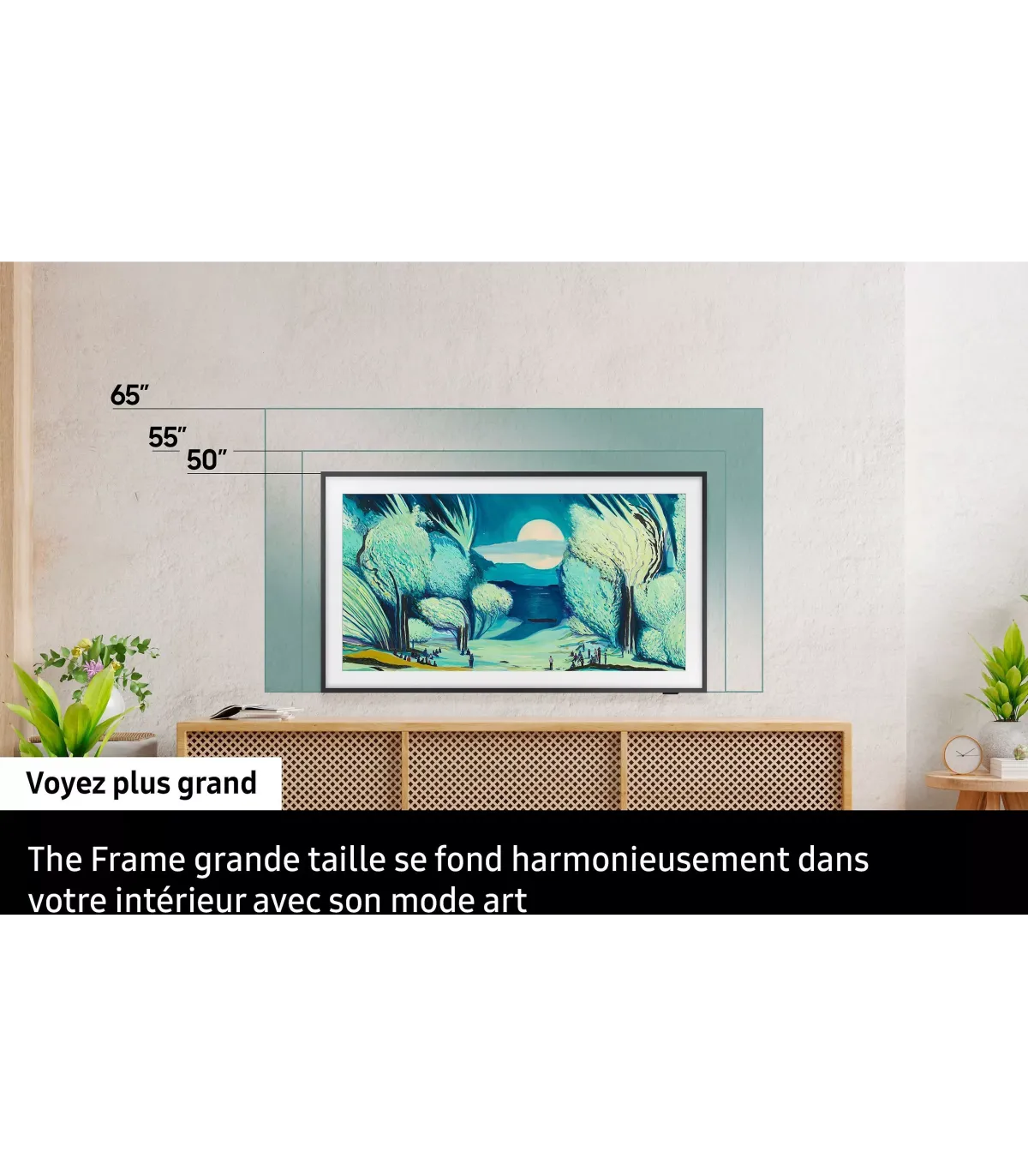 Découvrez le téléviseur Samsung The Frame 2025 TQ50LS03F, l’allié design et home cinéma par excellence. Son cadre épuré transforme votre salon en galerie grâce au Mode Art, tout en sublimant vos films avec une image 4K UHD (3840 x 2160) sur une dalle QLED 50" / 125 cm. Profitez d’un contraste nuancé, de couleurs riches et d’un upscaling précis porté par le processeur Quantum Processor 4K. Côté audio, le téléviseur offre un son immersif optimisé par l’IA pour vos séances cinéma. L’interface Tizen (Smart TV) garantit une navigation fluide avec vos applications préférées. Connectivité complète: Wi‑Fi, Bluetooth, HDMI (multiples), USB, eARC, optique. Installation simplifiée, gestion des câbles discrète et accrochage mural discret pour une intégration parfaite. Avec ses performances d’image, son smart écosystème et son design cadre, The Frame 2025 élève le style et l’expérience audiovisuelle de votre intérieur. Choisissez une TV qui marie art, technologie et connectivité avancée.