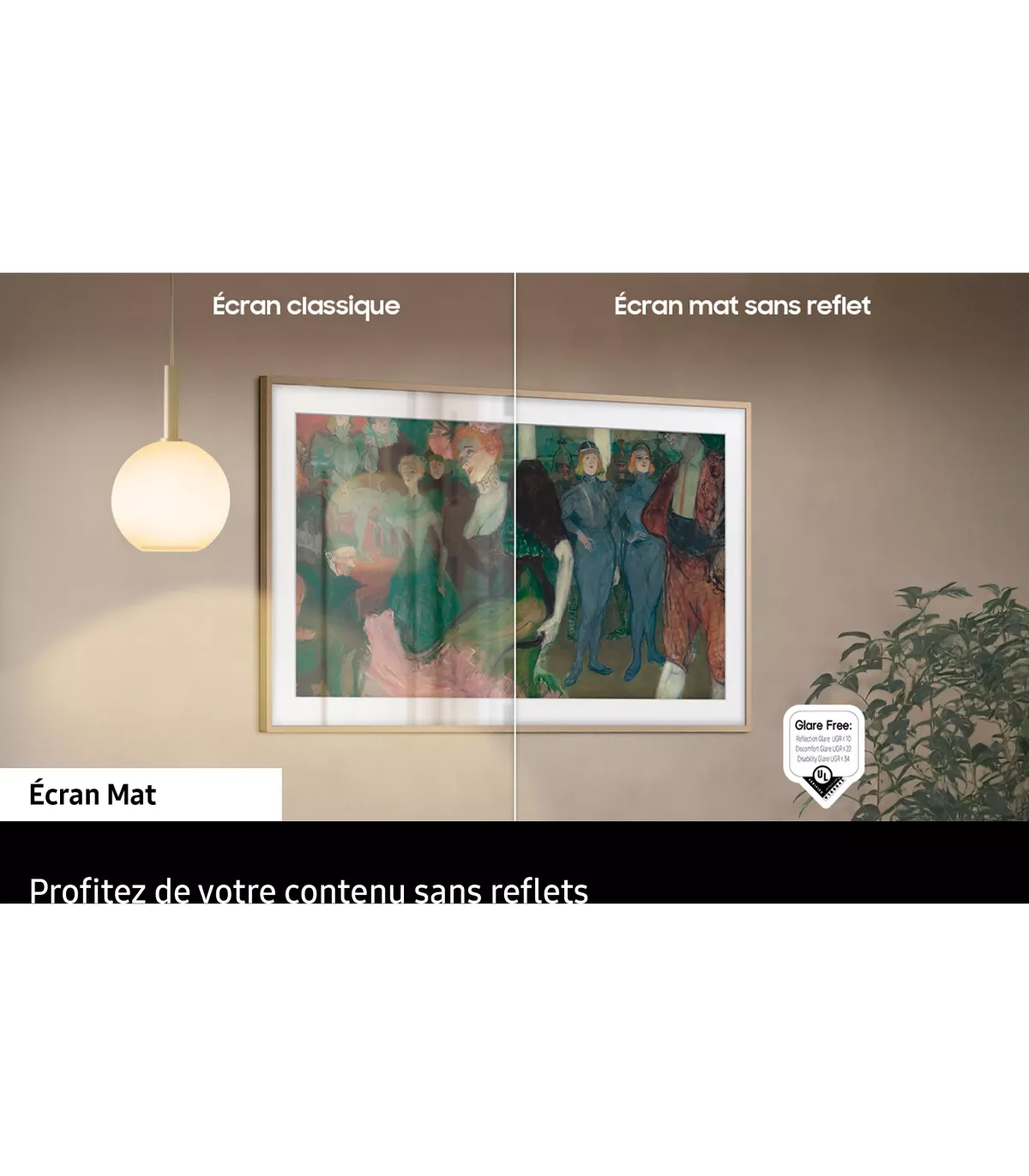 Découvrez le Samsung The Frame 2025 TQ50LS03FAUXXC, un téléviseur design qui sublime votre salon et vos films. Son écran 50" associe la résolution 4K UHD à la technologie QLED pour des couleurs riches et un contraste saisissant, renforcés par le HDR10+ pour une qualité d’image immersive et une véritable expérience cinéma à domicile. Profitez d’une action ultra fluide grâce au taux de rafraîchissement 120 Hz et d’un son précis optimisé pour vos contenus. Le système Smart TV Tizen offre un accès rapide à vos applications de streaming et un contrôle vocal intuitif. Côté connectivité, bénéficiez de ports HDMI multiples pour consoles et lecteurs, du Wi‑Fi pour un streaming stable et du Bluetooth pour vos barres de son et casques. Son design cadre iconique, avec cadres interchangeables et mode Art, transforme votre écran en œuvre lorsqu’il est en veille. Fin, élégant et discret, ce téléviseur Samsung allie performance, connectivité avancée et design moderne pour un achat durable et orienté plaisir.