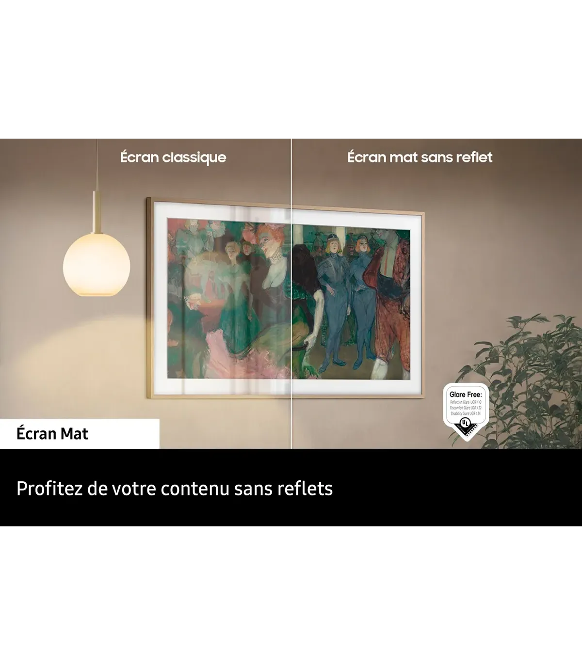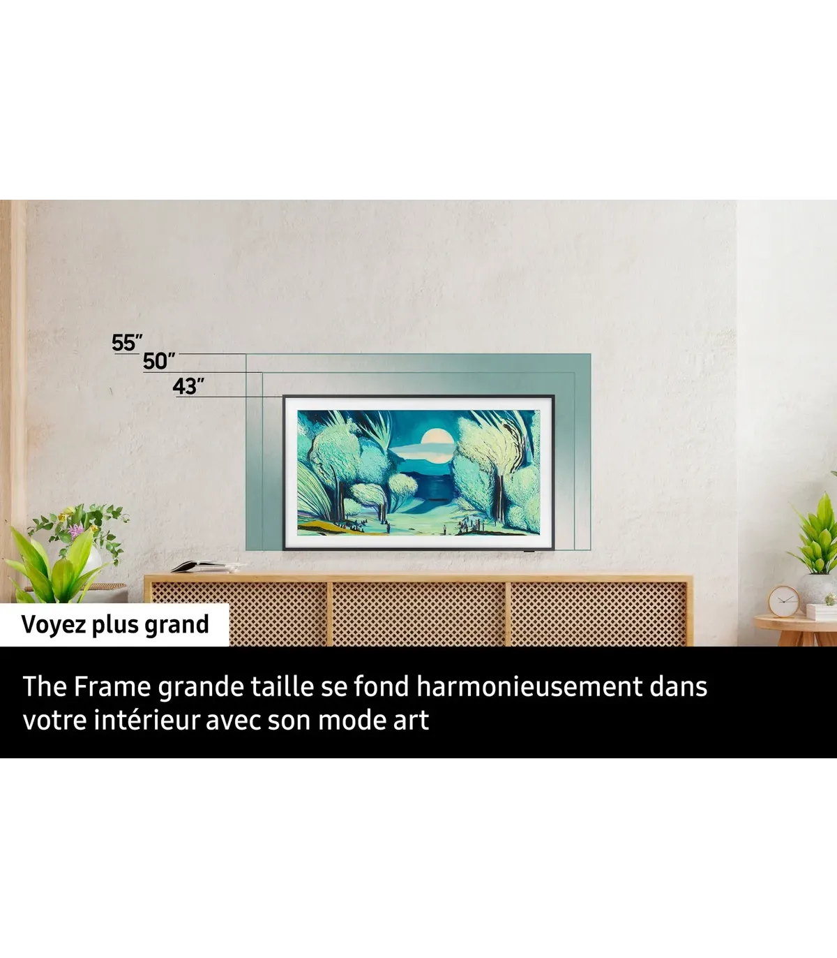 Découvrez le Samsung The Frame 2025 TQ55LS03F, l’alliance parfaite entre œuvre d’art et home cinéma. Son design cadre épuré sublime votre intérieur, avec des cadres interchangeables et un Mode Art élégant. Profitez d’une image magistrale grâce à la dalle QLED 55" (139 cm), la résolution 4K UHD (3840 x 2160), le Quantum HDR, le Dual LED et le Processeur Quantum 4K pour des couleurs riches et un upscaling précis. Le son immersif est servi par OTS Lite, Q‑Symphony et Dolby Digital Plus pour une scène audio ample et claire. Côté Smart TV, bénéficiez de Tizen pour un accès rapide aux applications et au contrôle vocal. Connectique complète avec 4x HDMI 2.1 (eARC), 2x USB, Sortie optique, Ethernet (LAN), CI+, RF/antenne, Bluetooth, Wi‑Fi et AirPlay 2. Compatible ALLM et HGiG** pour le jeu, ce téléviseur transforme chaque séance en expérience cinéma, tout en s’intégrant avec élégance à votre décor.